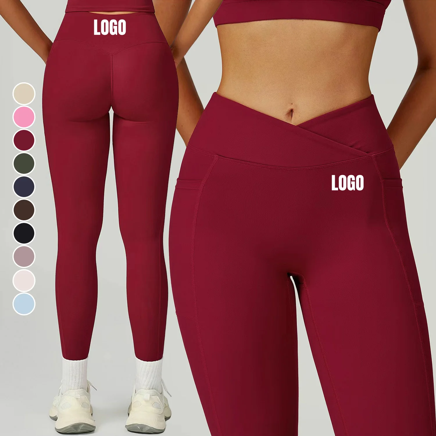 YISHENHON Custom Butt Lift Yoga Leggings for Women High Waist Sport Pants with Pockets Running Fitness Workout Gym Activewear