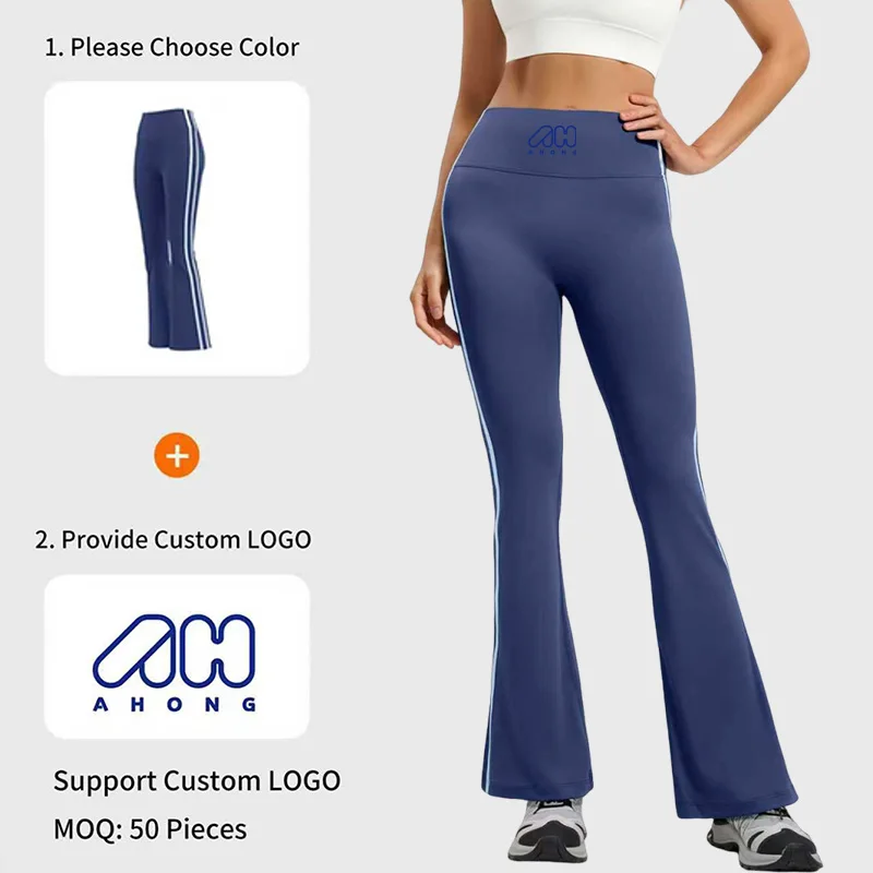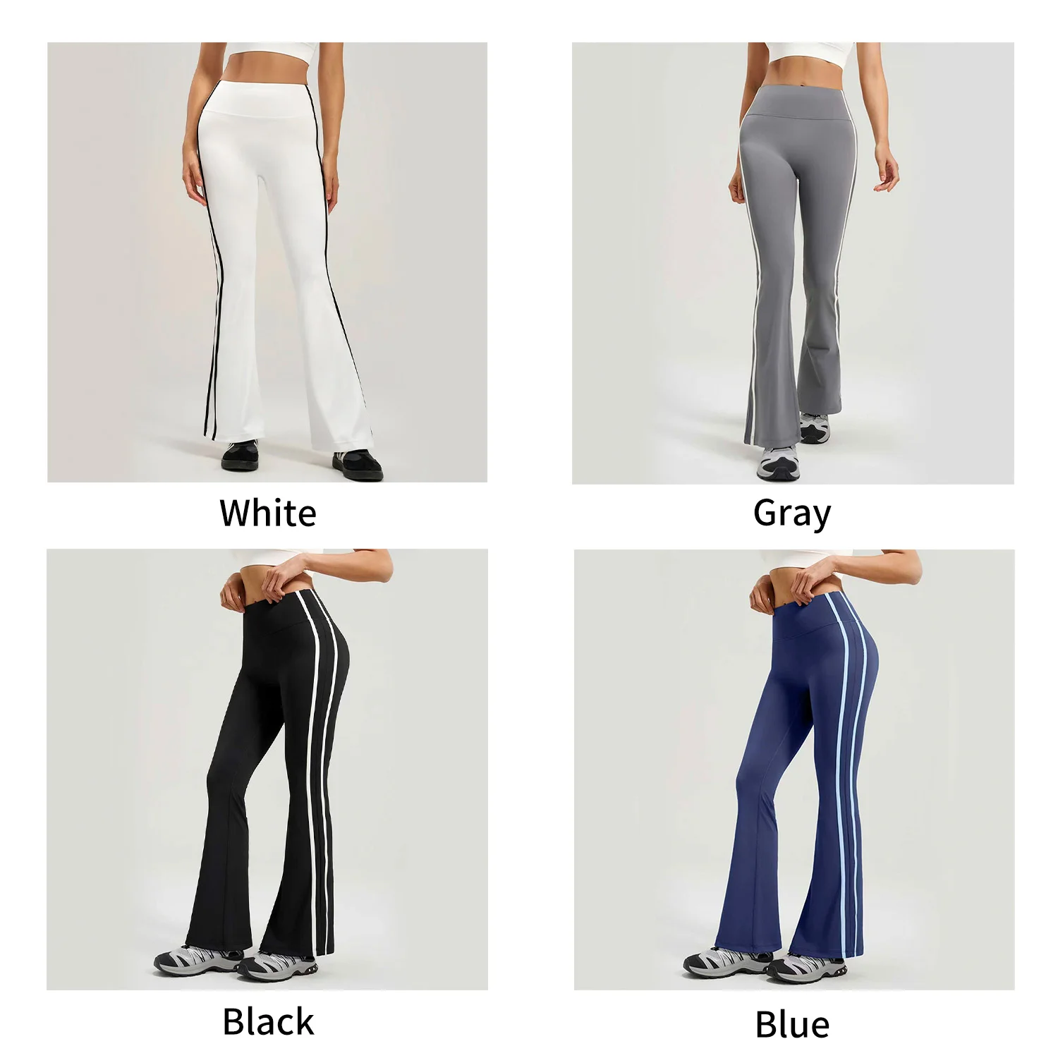 High Quality Custom Women's Striped Flared Pants Color Contrast Tummy Control Yoga Pants Quick Dry Slim-Fit Flare Leggings