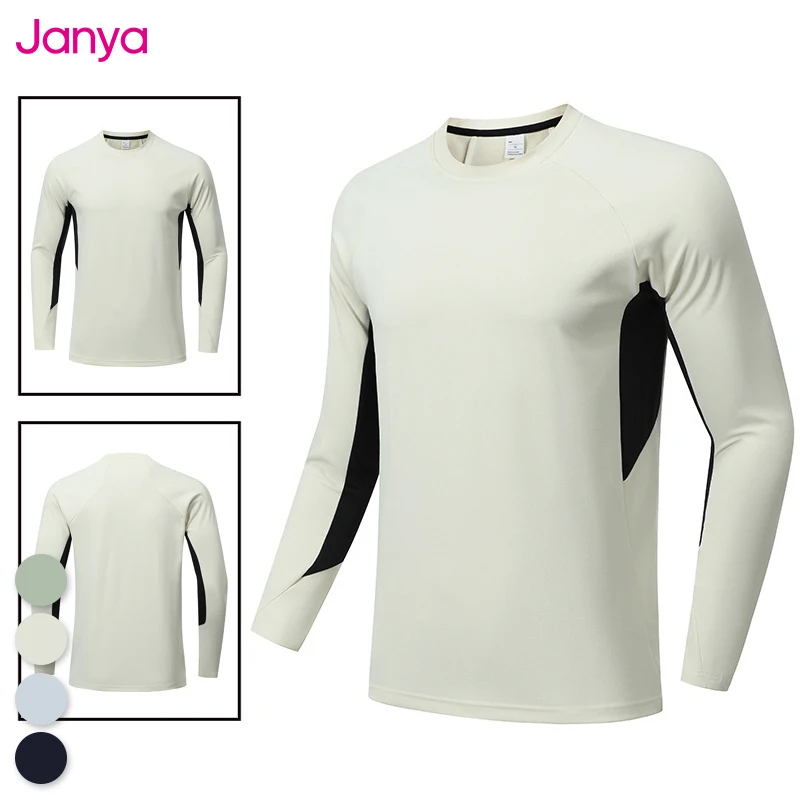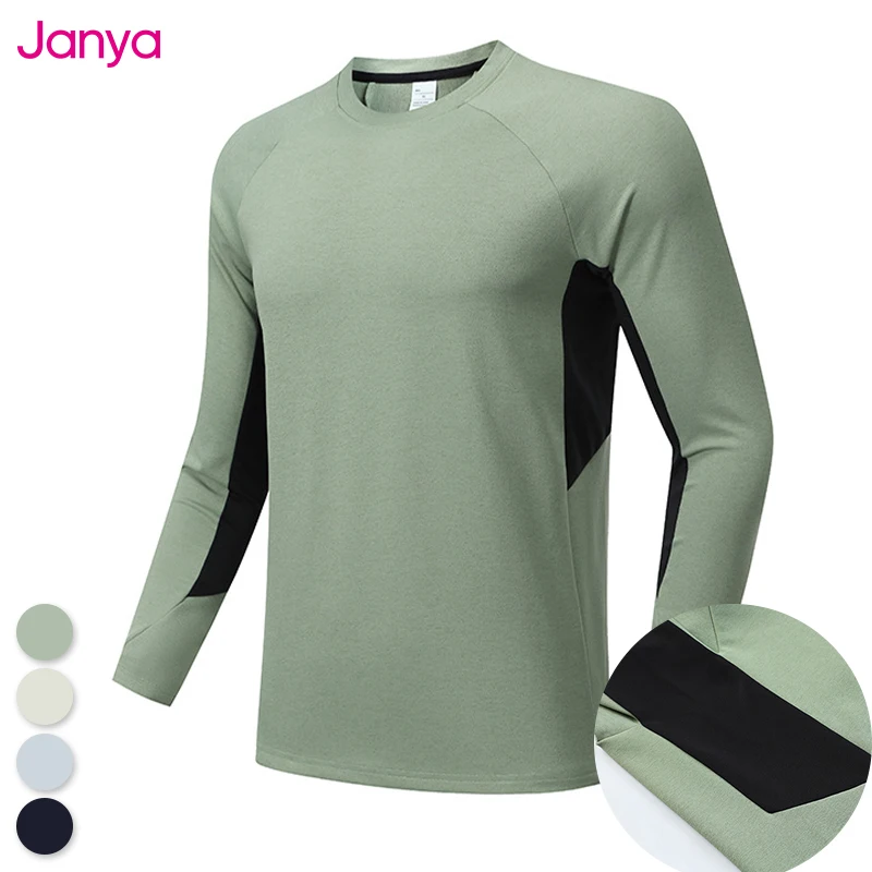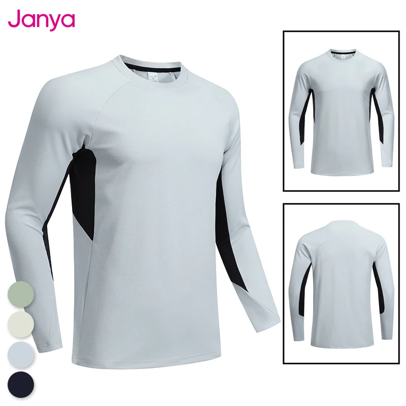 Janya Breathable Men's Outdoor Quick-Drying Long Sleeve T-Shirt Slim Fit Gym Fitness Round Neck Casual Sports Muscle Tee Shirts