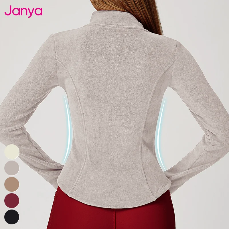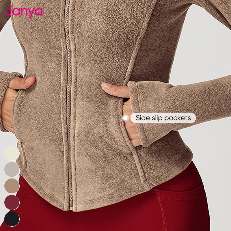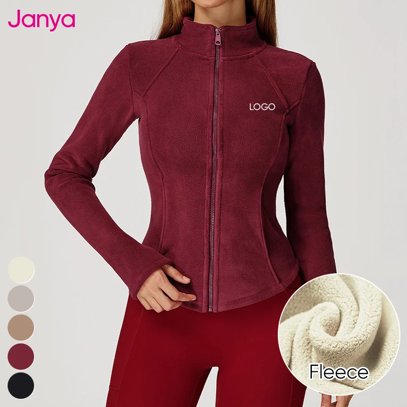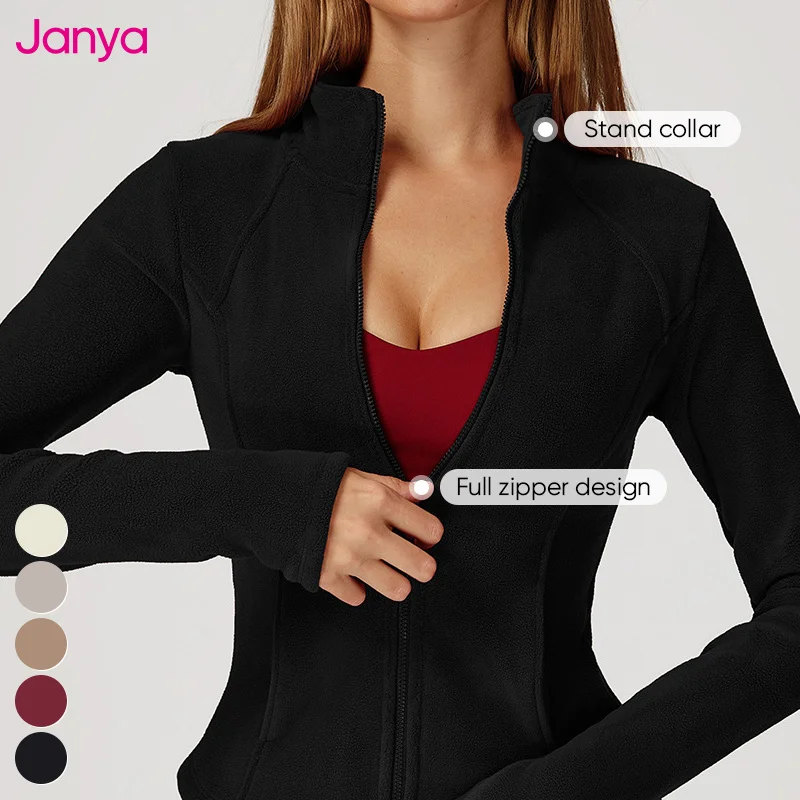 Janya Thick Warm Gym Fitness Workout Top Long Sleeve Stand Collar Sports Jackets Full Zipper Polar Fleece Yoga Jacket for Women