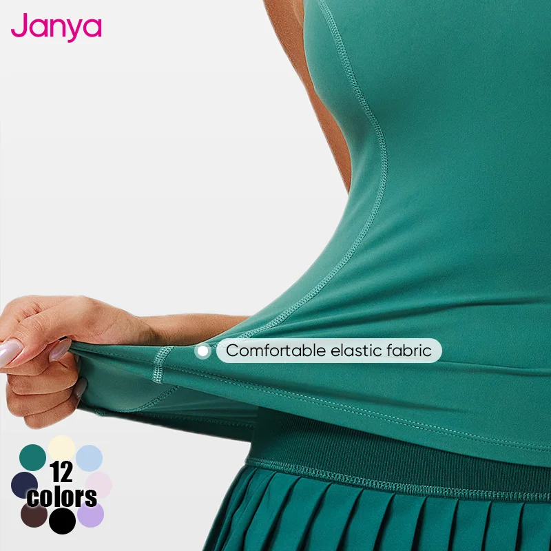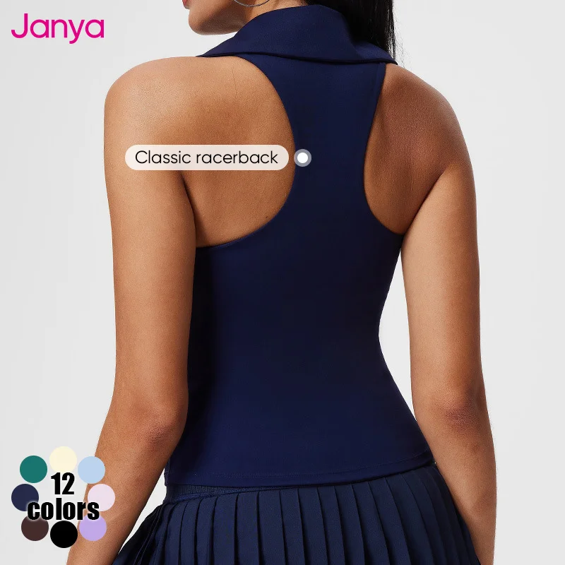 Janya Plus Size Quick Dry Fixed Cup V-Neck Sports T-shirt Racerback Sleeveless Tennis Golf Tops Lapel Yoga Tank Top for Women