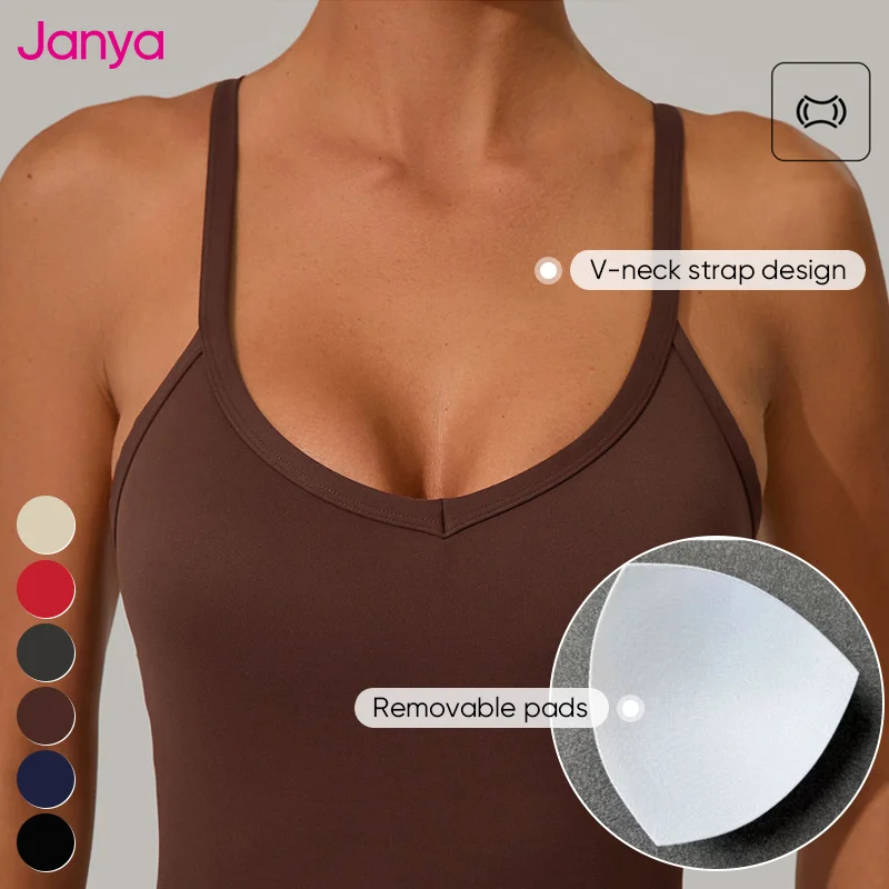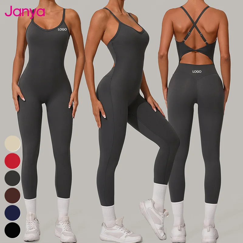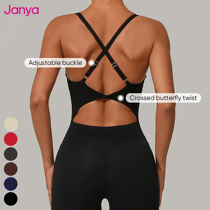 Janya Women's Adjustable Buckle Cross Back Straps Backless Sports Bodysuit Fitness Jumpsuit Sleeveless One Piece Yoga Jumpsuit
