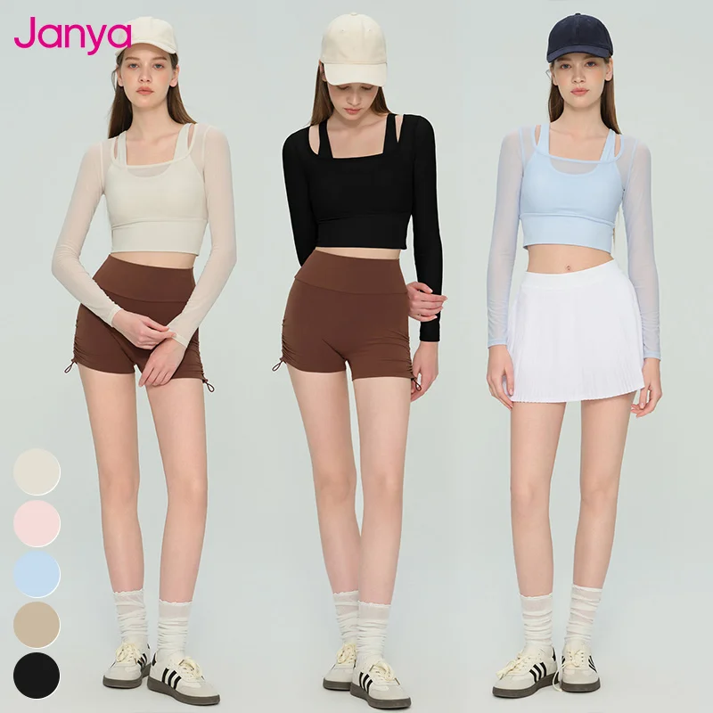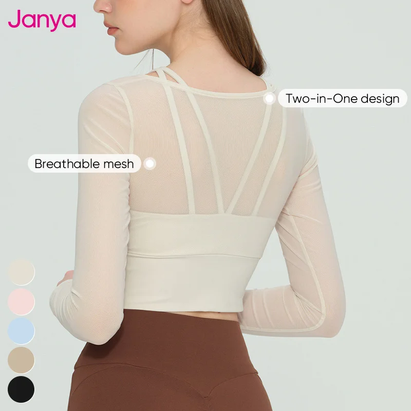 Janya Nude Feel Quick Dry Breathable Four-Way Stretch Gym Clothing Fixed Cups Cropped Sports Shirts Long Sleeve Yoga Crop Tops