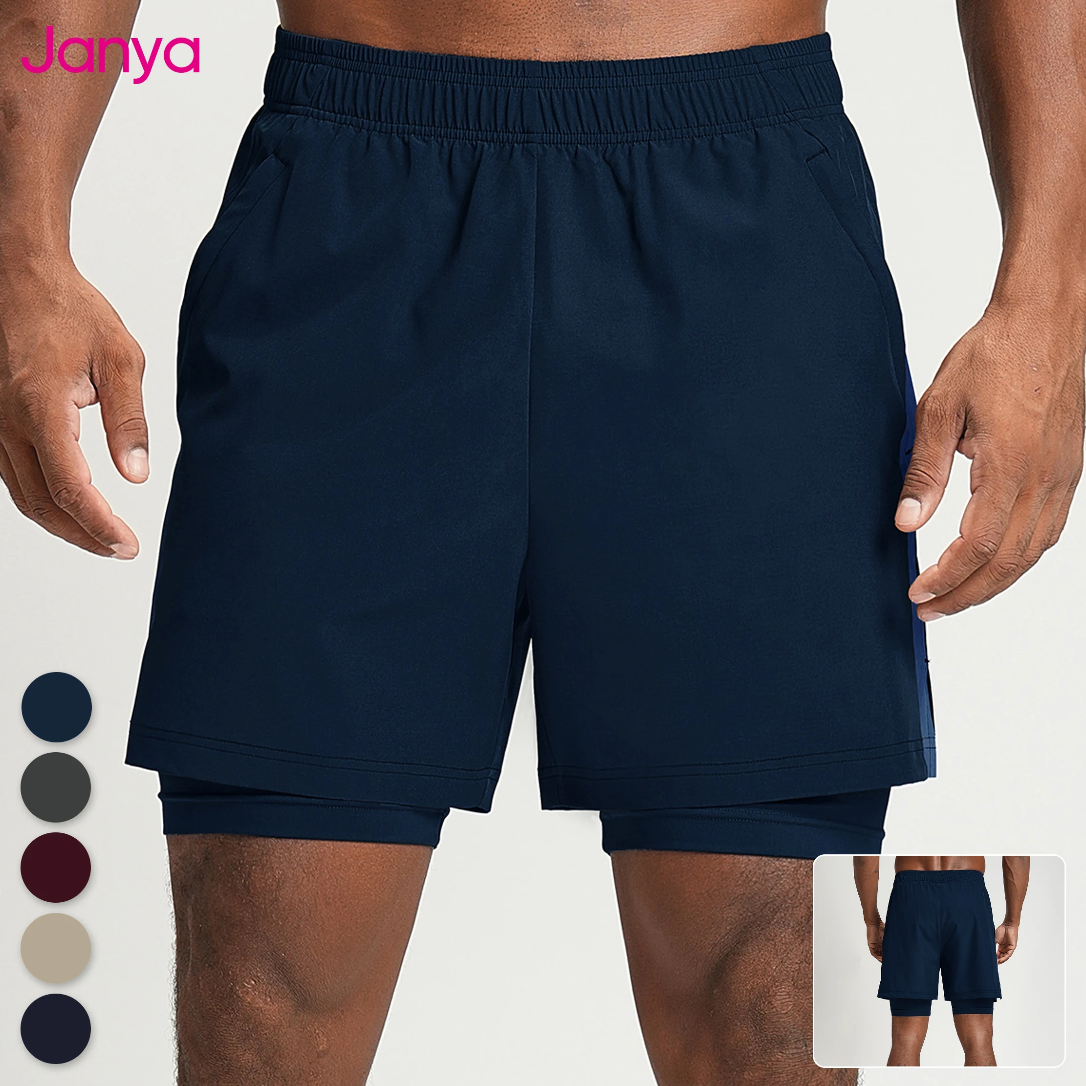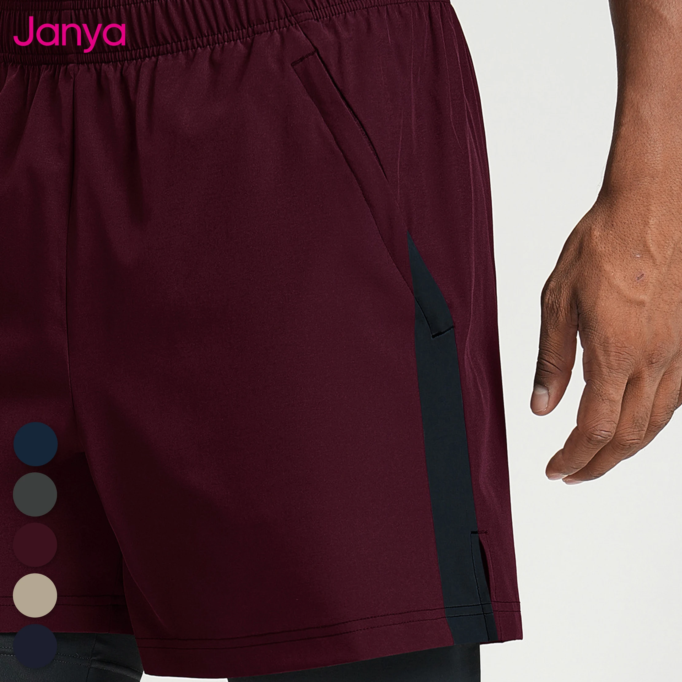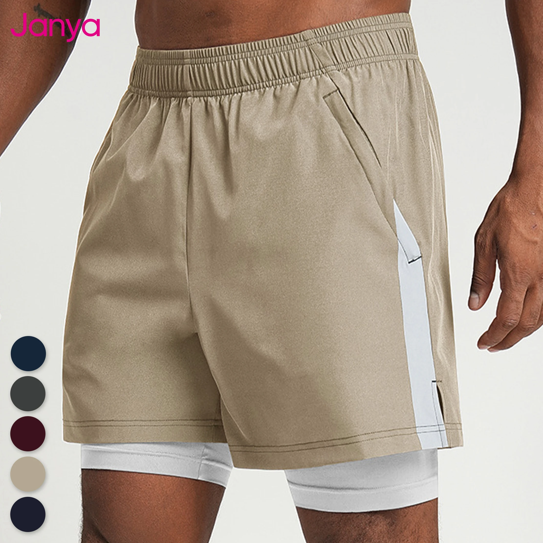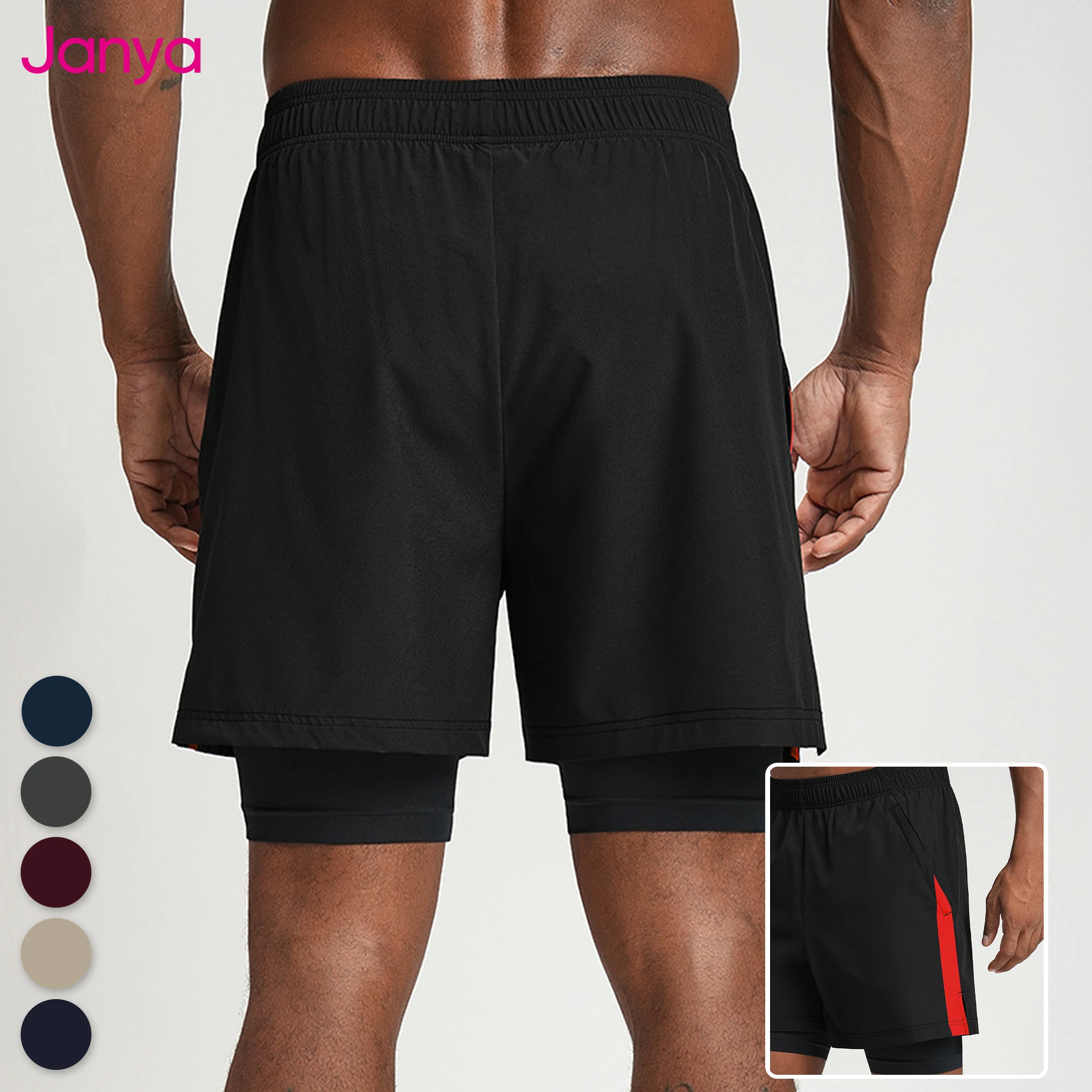 Janya Custom 2 in 1 Shorts for Men Color-Block Side Lined Design Breathable Running Gym Fitness Workout Casual Active Shorts