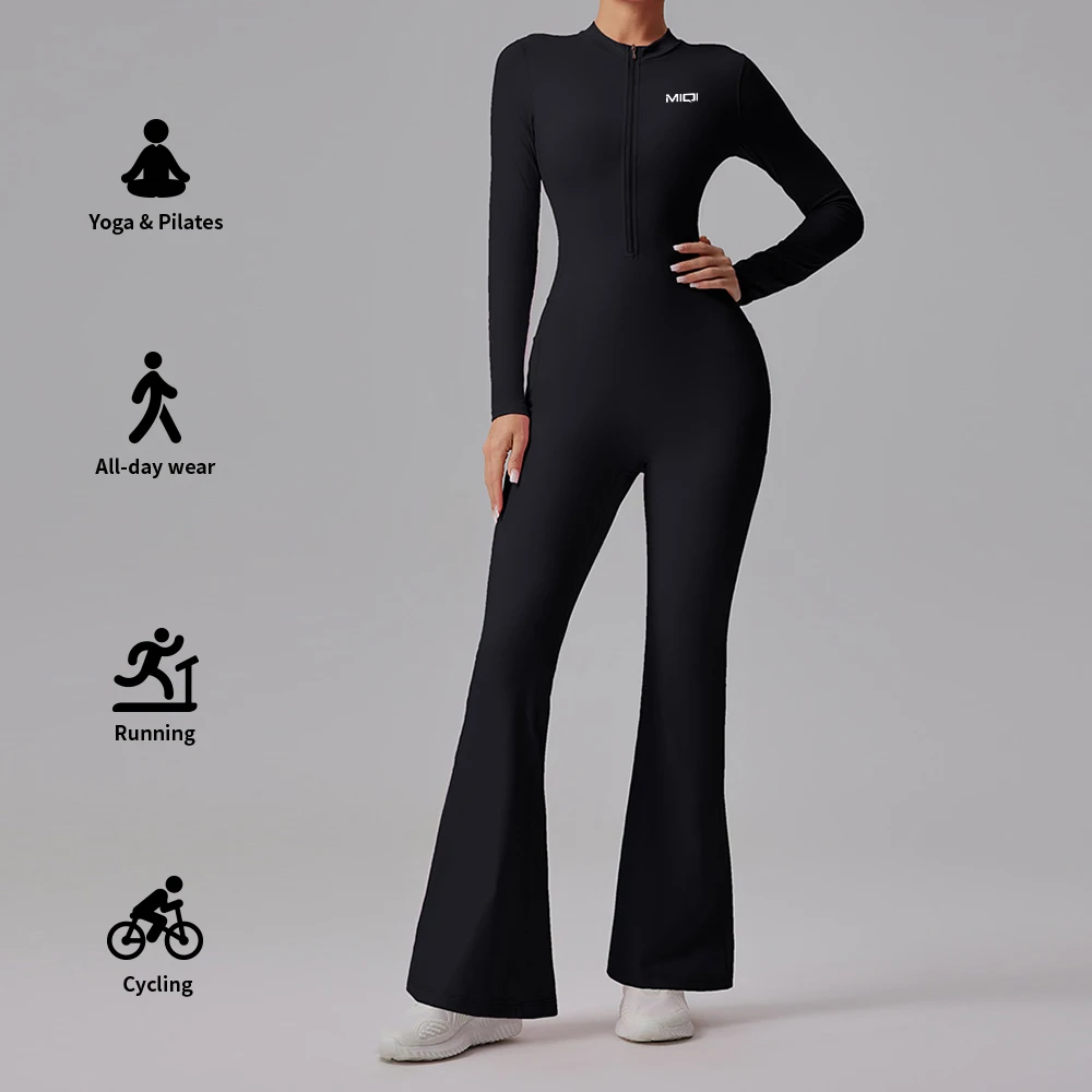 Nylon Gym Fitness Set One Piece Yoga Wear Front Half Zipper Active Wear Women Rompers Bodysuits Jumpsuits