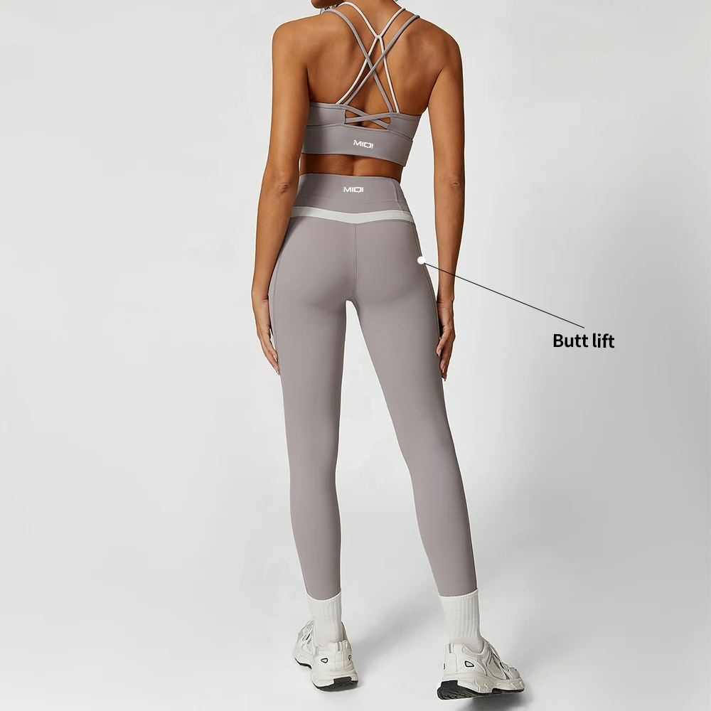 Custom Style Nylon Sports Bra V Shape Cross Waisted Fitness Gym Leggings Yoga Sets Women Active Wear