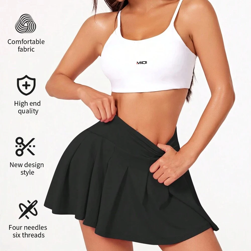 High Waisted Lightweight Workout Exercises Outwear Shorts Skirts Tennis Wear 2Pcs Fitness Running Skirts Sets