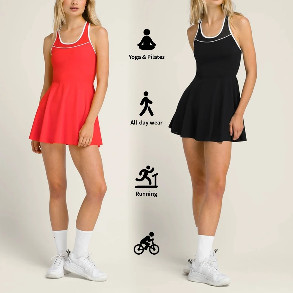YISHENHON New Design Fake-two Sports Dress Female Anti-slip Outdoor Running Fitness Tennis Dress Women With High Quality