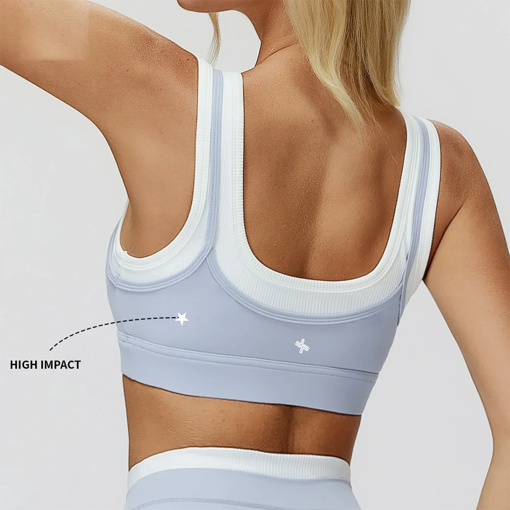 High Quality Plus Size Sexy Gym Active Yoga Set Front Halter Backless Strappy Padded Spandex Twist Knot High Waisted Sport Bra