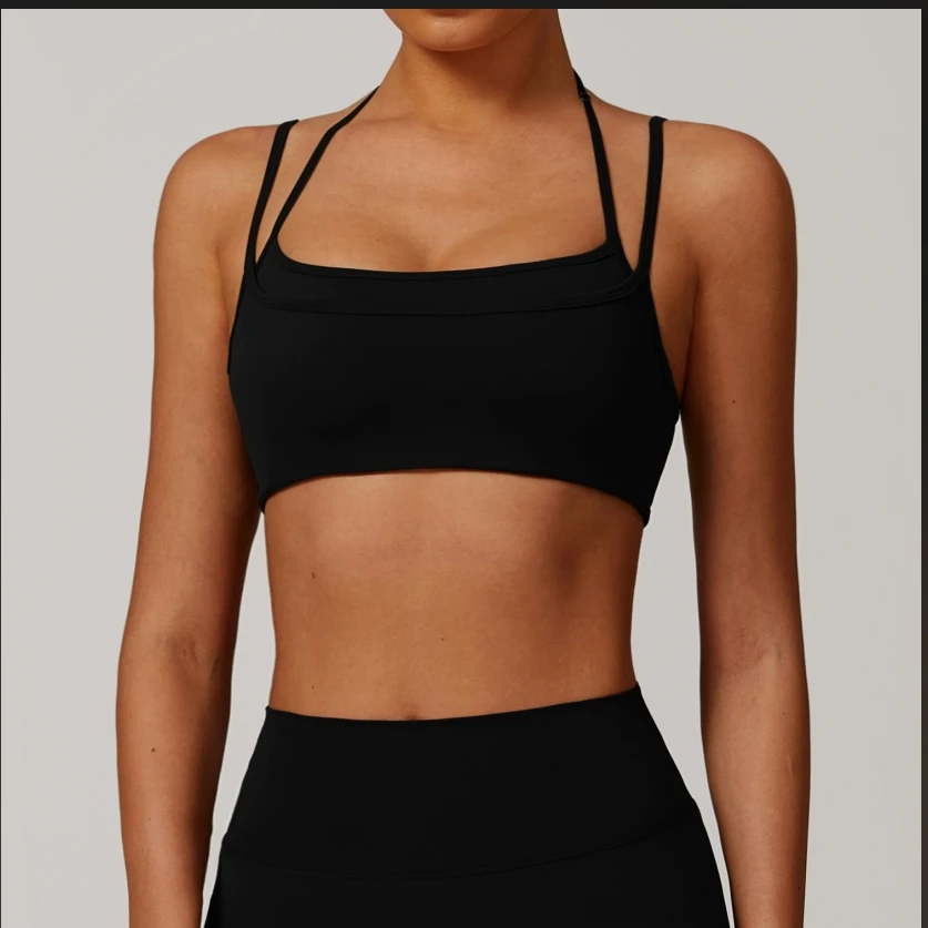TOPKO High Quality OEM Women's back nude Yoga bra Quick dry sports elastic shoulders hanging neck fitness running underwear