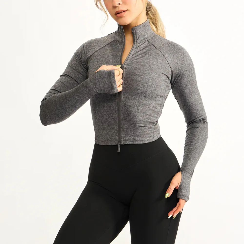 YISHENHON New Arrivals Quick-drying Women's Tight Running Sports Fitness Yoga Jacket Activewear Zip Long Sleeve Workout Crop Top