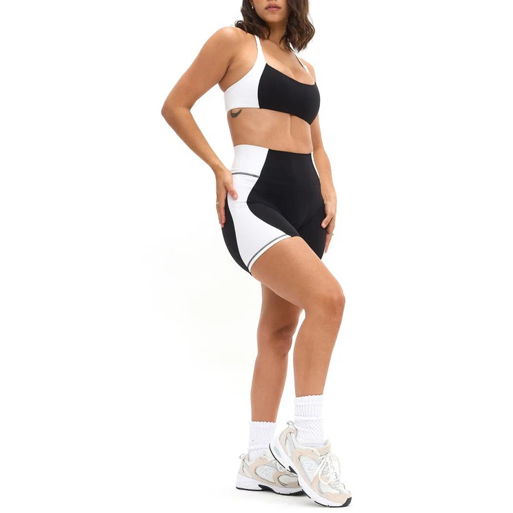 Custom Logo Four-Way Stretch Fitness Gym Activewear Wear 2 Pieces Square Neckline Sports Bra and Short Yoga Sets for Women