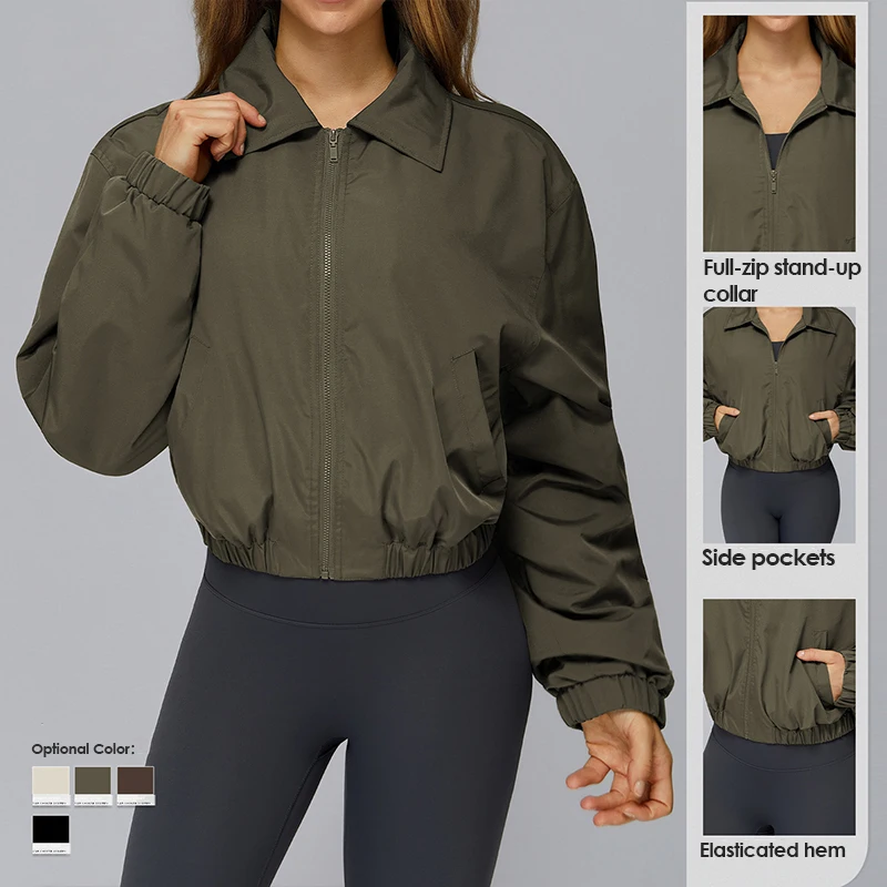 YISHENHON New Arrivals Quick-drying Women's Tight Running Sports Fitness Yoga Jacket Activewear Zip Long Sleeve Workout Crop Top