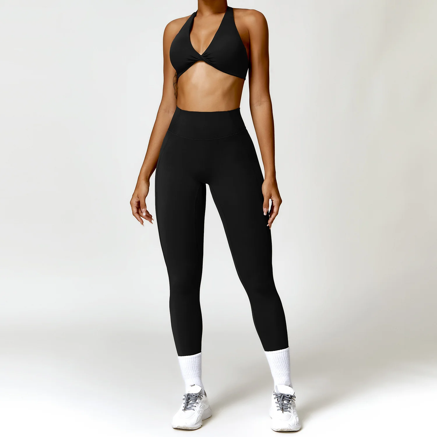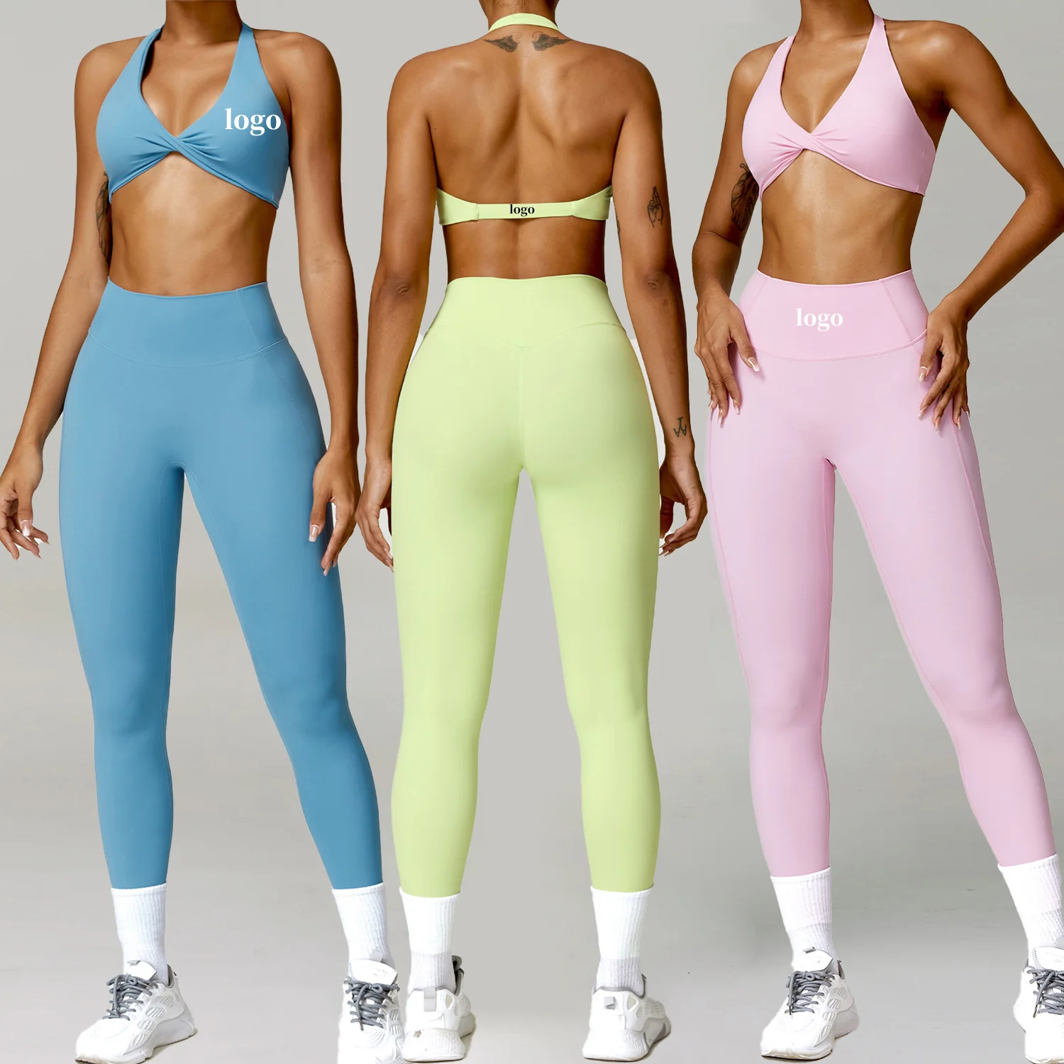 New 2PCS Yoga Sets Wholesale High Waist Leggings Workout Cloth Halter Sports Bra GYM Fitness Wear Casual Sportswear for Women