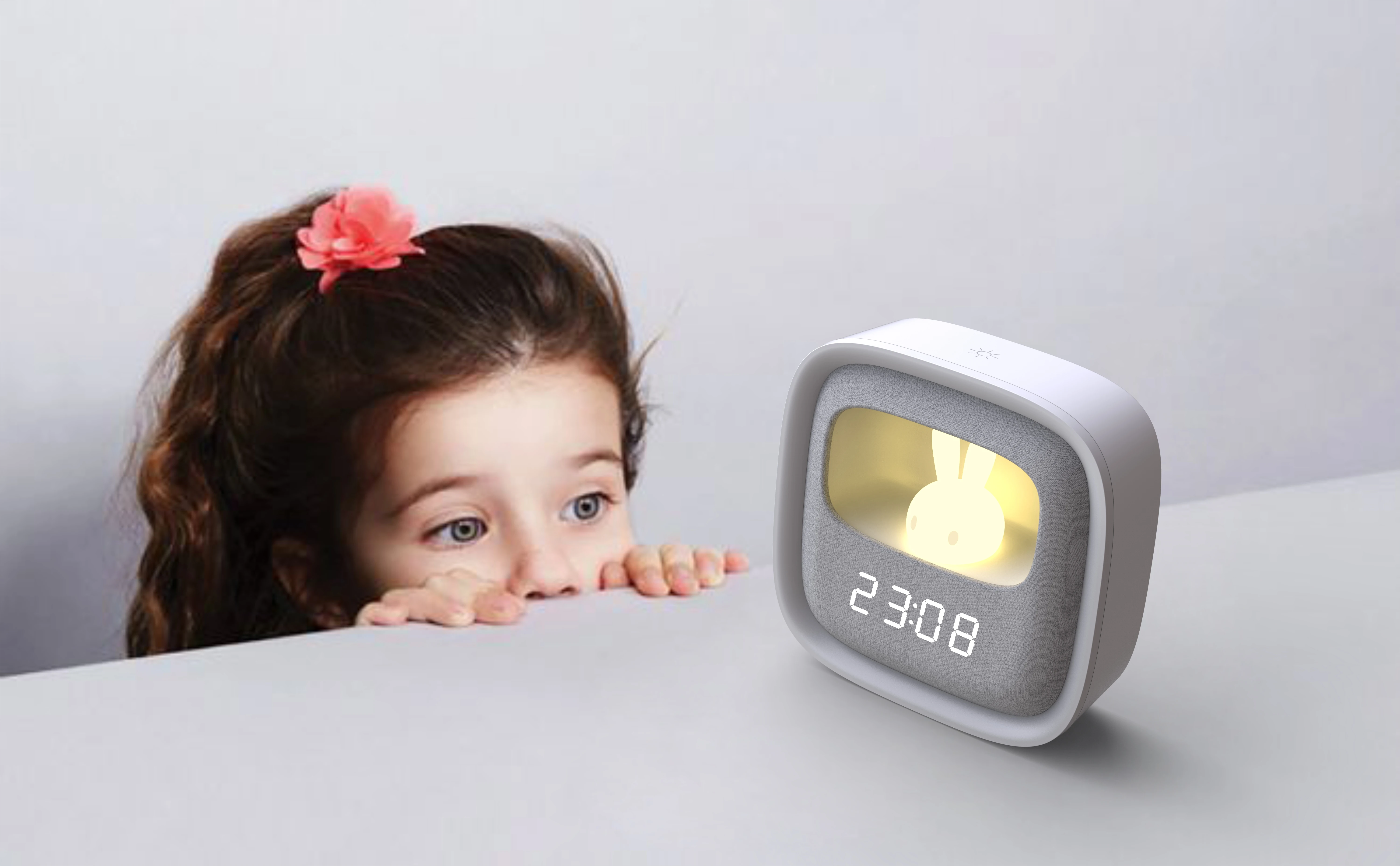 Cartoon Night Light LED Display Alarm Clock, Dimmer Light Desk Clock, Fabric Decoration Night Light Alarm Clock