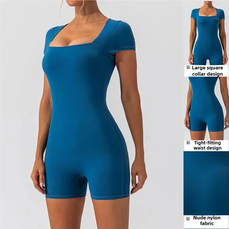 New Outdoor Running Sports Bodysuit & Jumpsuit One-Piece Nude Training Fitness Short Sleeve Clothing for Yoga & Training
