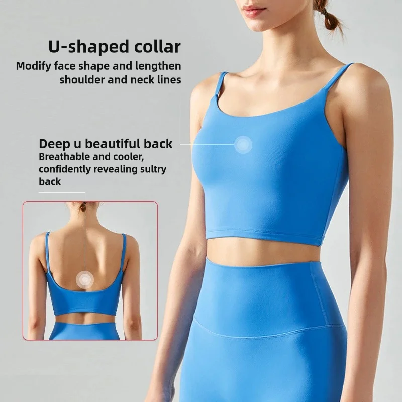 Women's Sleeveless High Strength Sports Bra Soft Backless Strappy Fitness Design with Removable Chest Pad and Shockproof Push