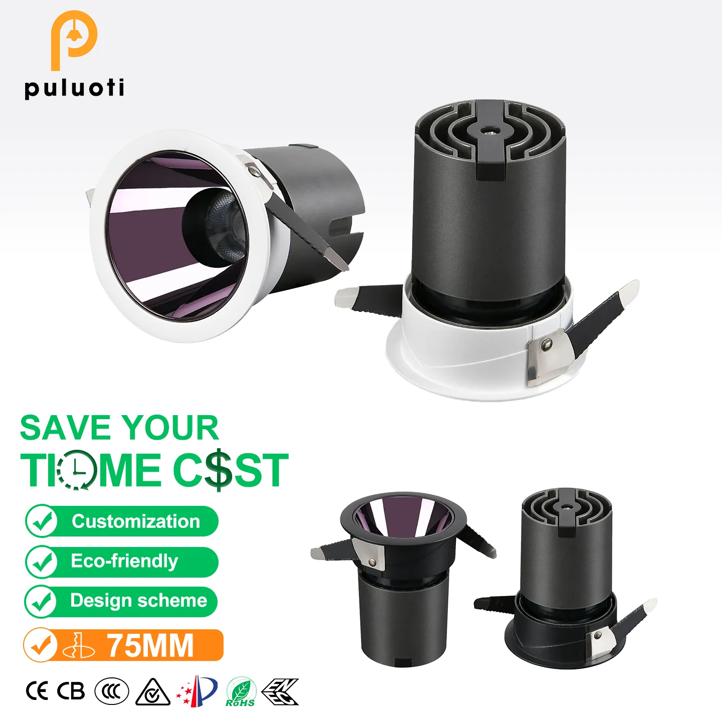 Modern 75mm Built-In Spotlights with Adjustable Angle High CRI Full-Spectrum Eye Protection Technology for Indoor Environments