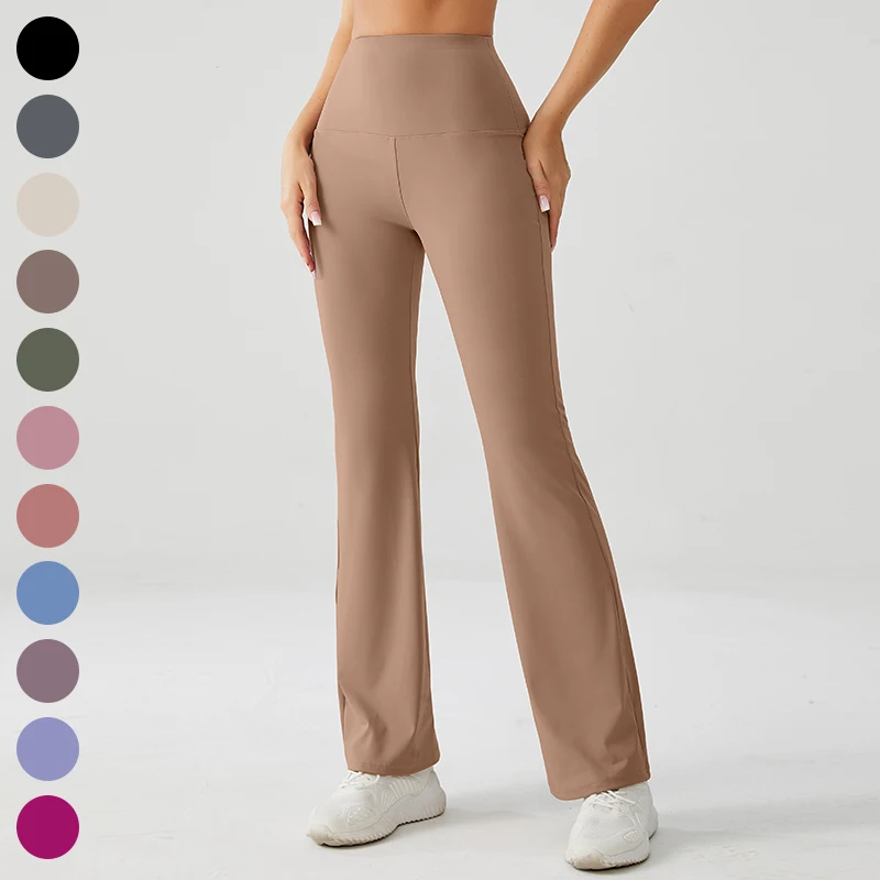 YISHENHON Recyclable Fabric Quick Dry Yoga V Waist Gym Leggings Running Workout Wide Leg Pants Flare Woman Sport Pants