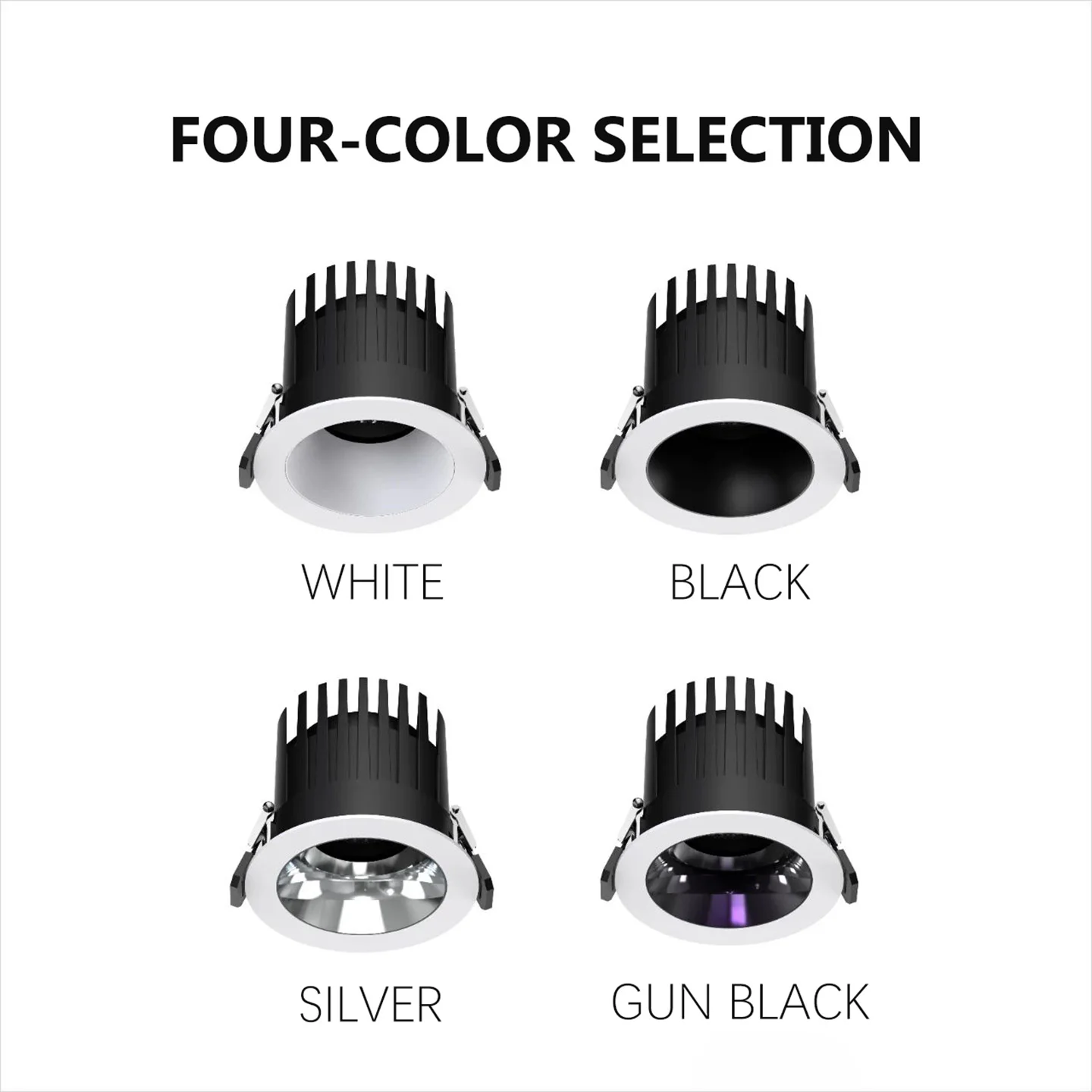 PULUOTI 12W 24° 75mm Adjustable Round IP20 Recessed LED Ceiling Light Modern Style Aluminum Body Spotlight Black
