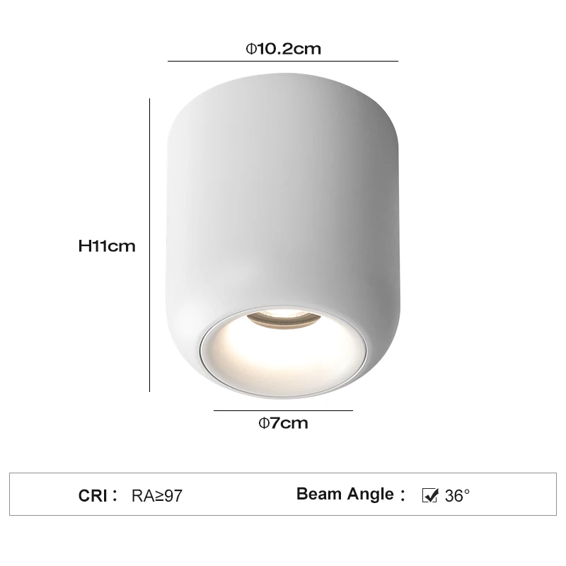 PULUOTI 12W H110mm 36° LED Ceiling Spot Light White Black for Living Room Office 5000K Daylight White Warm Aluminum Surface IP44