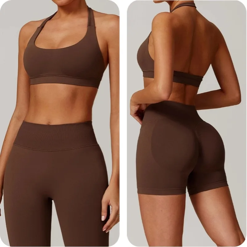 YISHENHON Women's 5-Piece Yoga Set Seamless Knitted Brocade Ammonia Fabric Thick Elasticity Workout Fitness Wear Suit