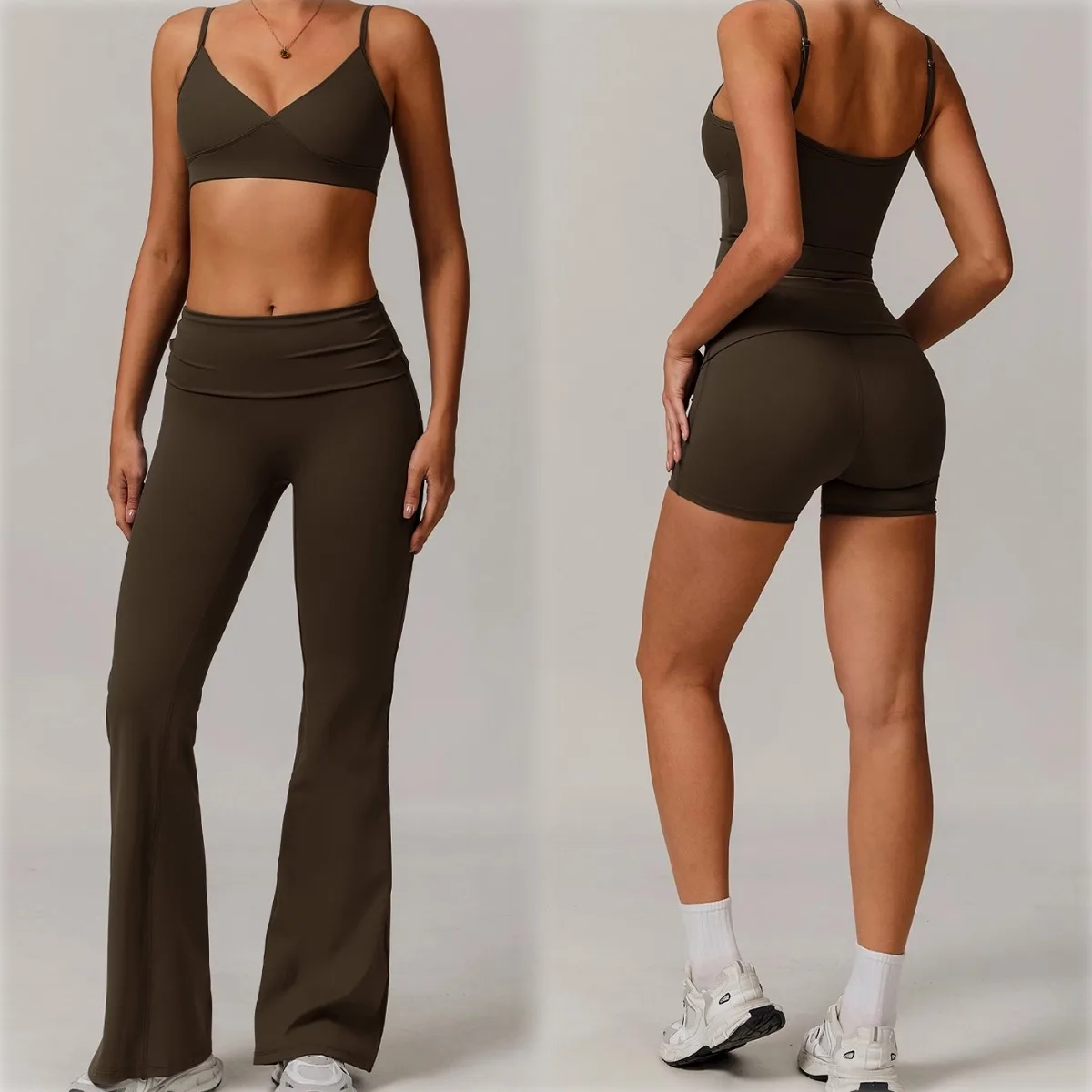 YISHENHON Recyclable Fabric Quick Dry Yoga V Waist Gym Leggings Running Workout Wide Leg Pants Flare Woman Sport Pants