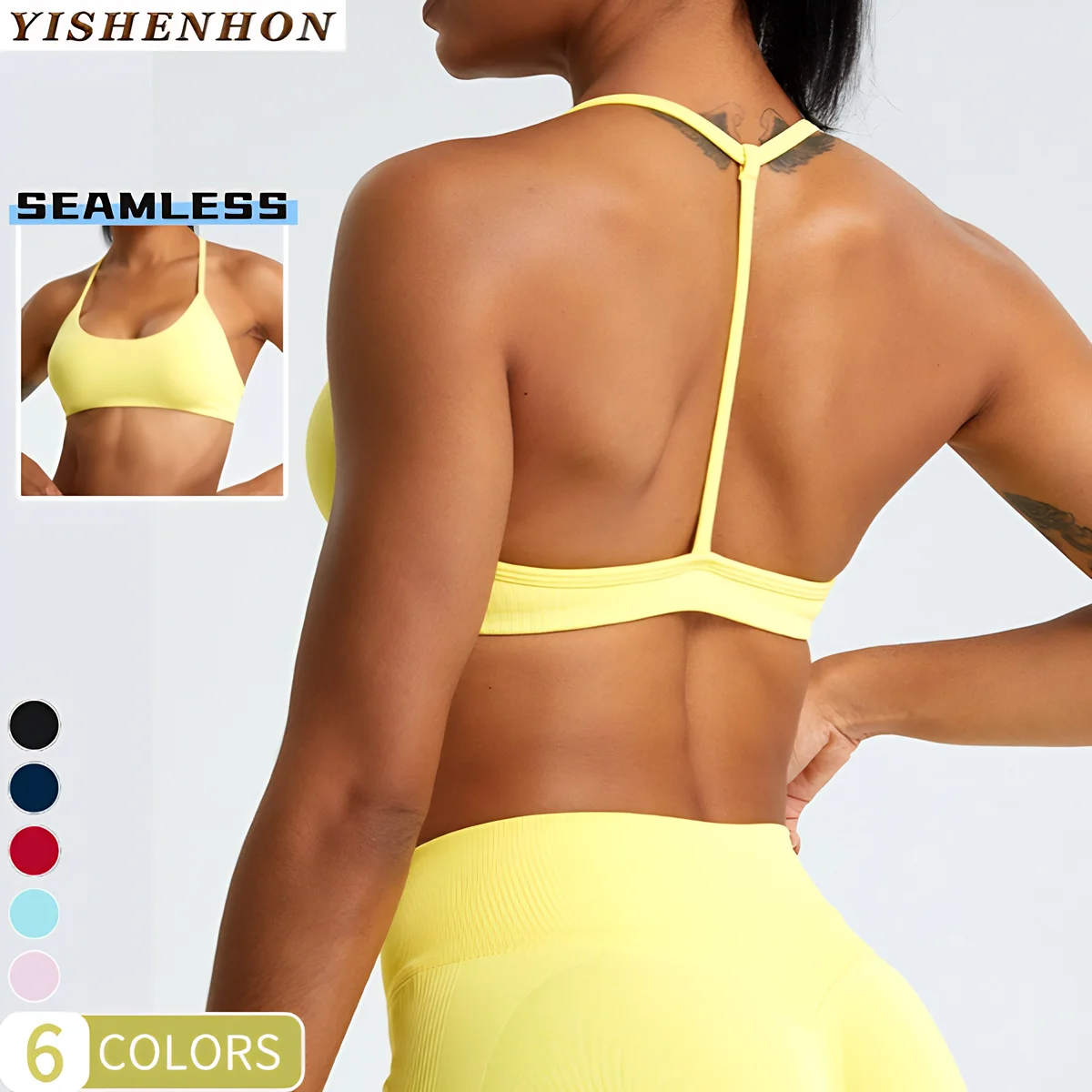 YISHENHON High Quality Nylon Women's Gym Bra Comfortable Workout with Elastic Halter Neck Design Seamless Fashion Print Yoga Bra