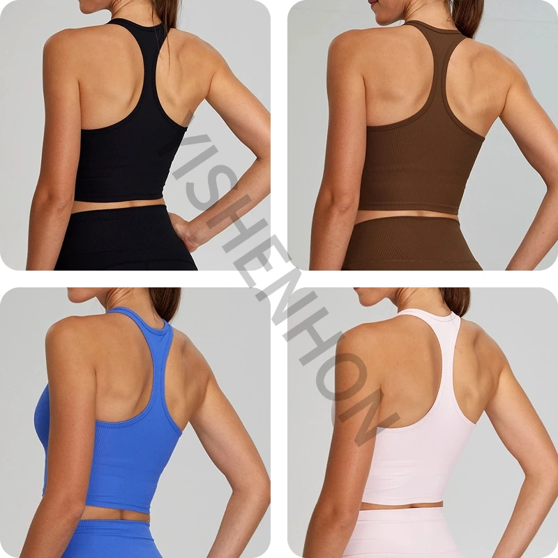 YISHENHON Women's Sports Bras Striped Knitted Threaded Yoga Bra Halter I-shaped Back Tight Running Fitness Vest for Workout