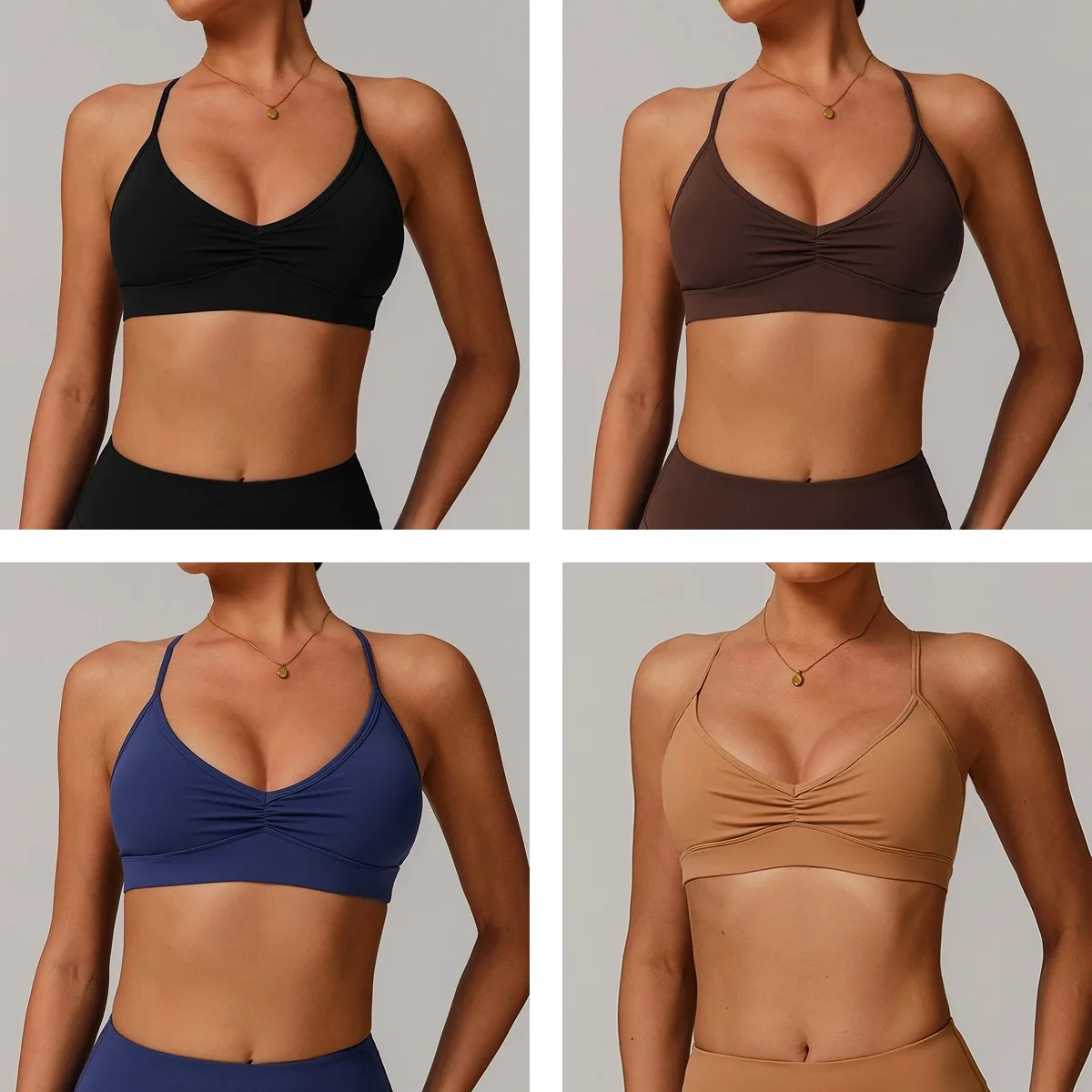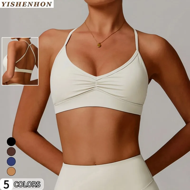 YISHENHON Quick-drying V-neck Yoga Bra for Womens Cross Back Front Pleated Underwear Running Sports Fitness Bra