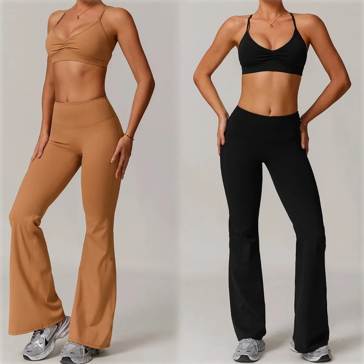 YISHENHON Recyclable Fabric Quick Dry Yoga V Waist Gym Leggings Running Workout Wide Leg Pants Flare Woman Sport Pants