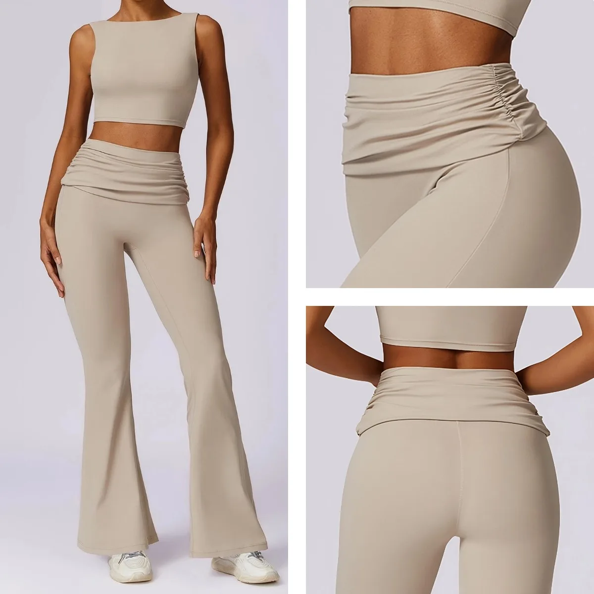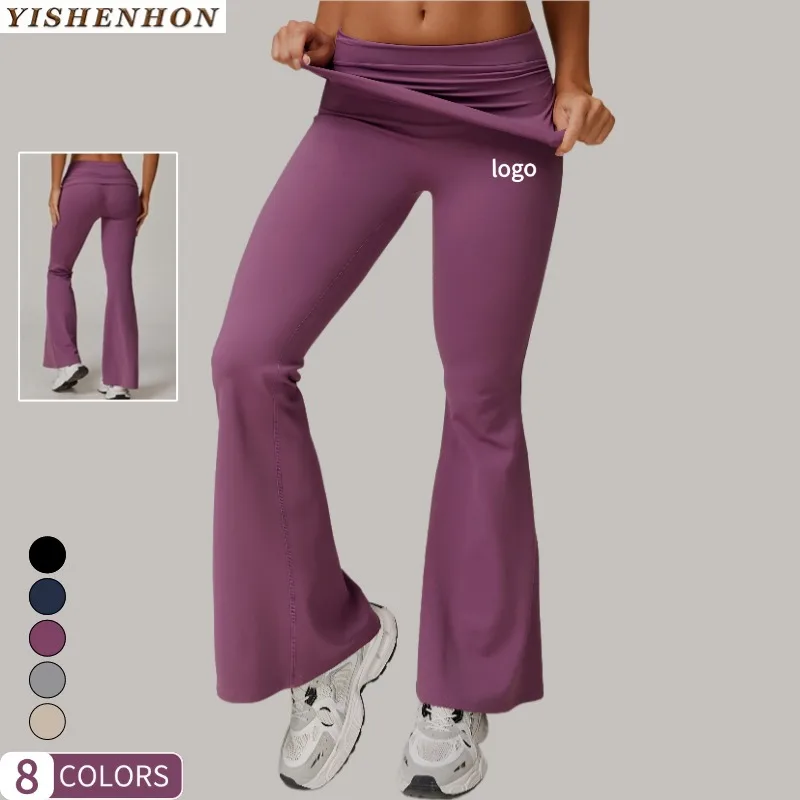 YISHENHON Recyclable Fabric Quick Dry Yoga V Waist Gym Leggings Running Workout Wide Leg Pants Flare Woman Sport Pants