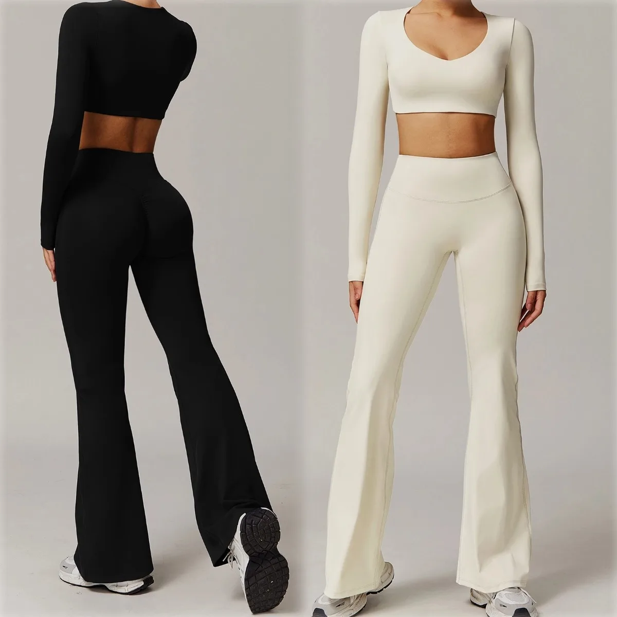 YISHENHON Recyclable Fabric Quick Dry Yoga V Waist Gym Leggings Running Workout Wide Leg Pants Flare Woman Sport Pants