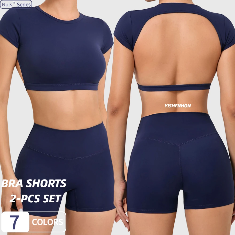 For YISHENHON Custom Gym Clothing Women's Activewear Set 2 Pieces Fitness Workout Yoga Stretchy Seamless Bra Scrunch Butt Solid