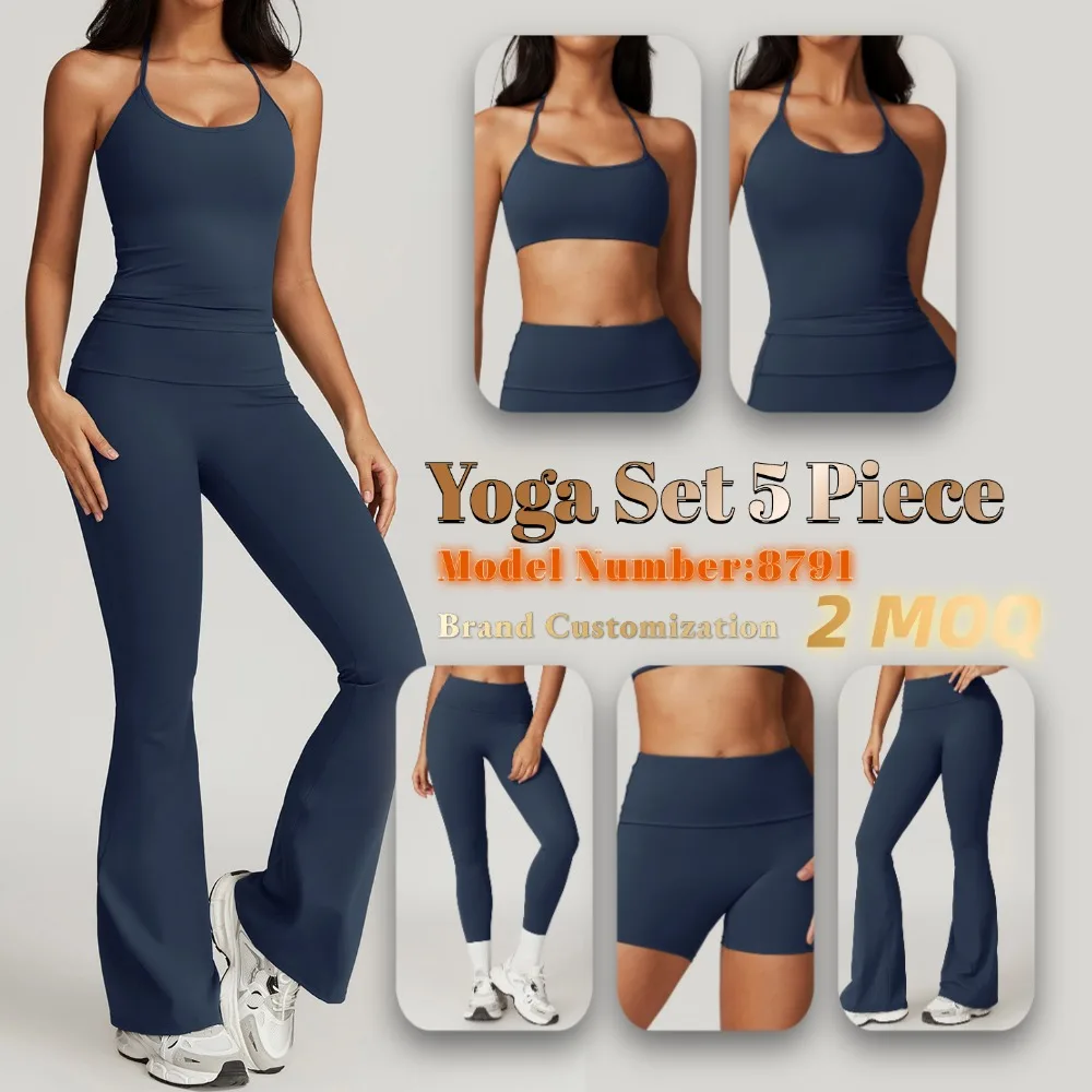 YISHENHON Recyclable Fabric Quick Dry Yoga V Waist Gym Leggings Running Workout Wide Leg Pants Flare Woman Sport Pants