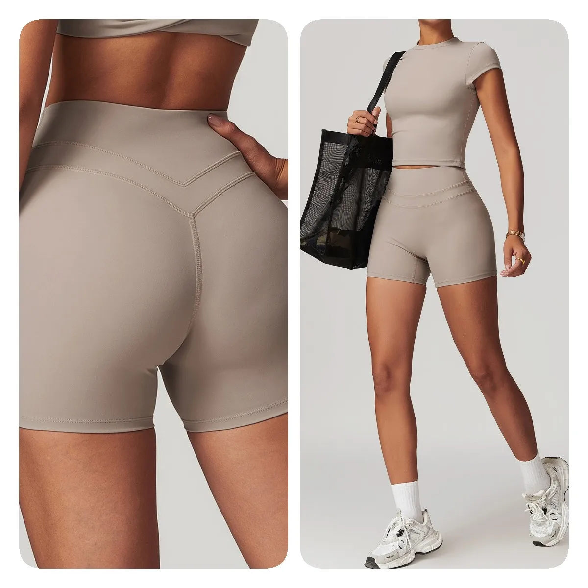YISHENHON Womens Tight Yoga Shorts Fitness Shorts Womens Custom Logo Yoga Clothes High Stretch High Waist Peach Hip Running