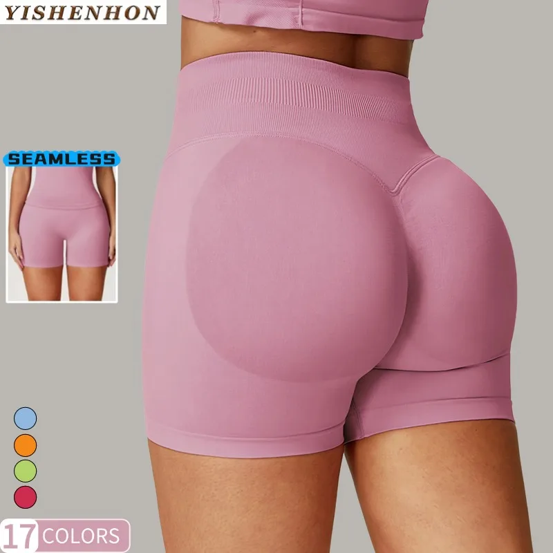 YISHENHON 2026 Women's High-Waist Seamless Scrunch Fitness Yoga Shorts Quick Dry Colors Custom Logo Hot Sale Unique Print