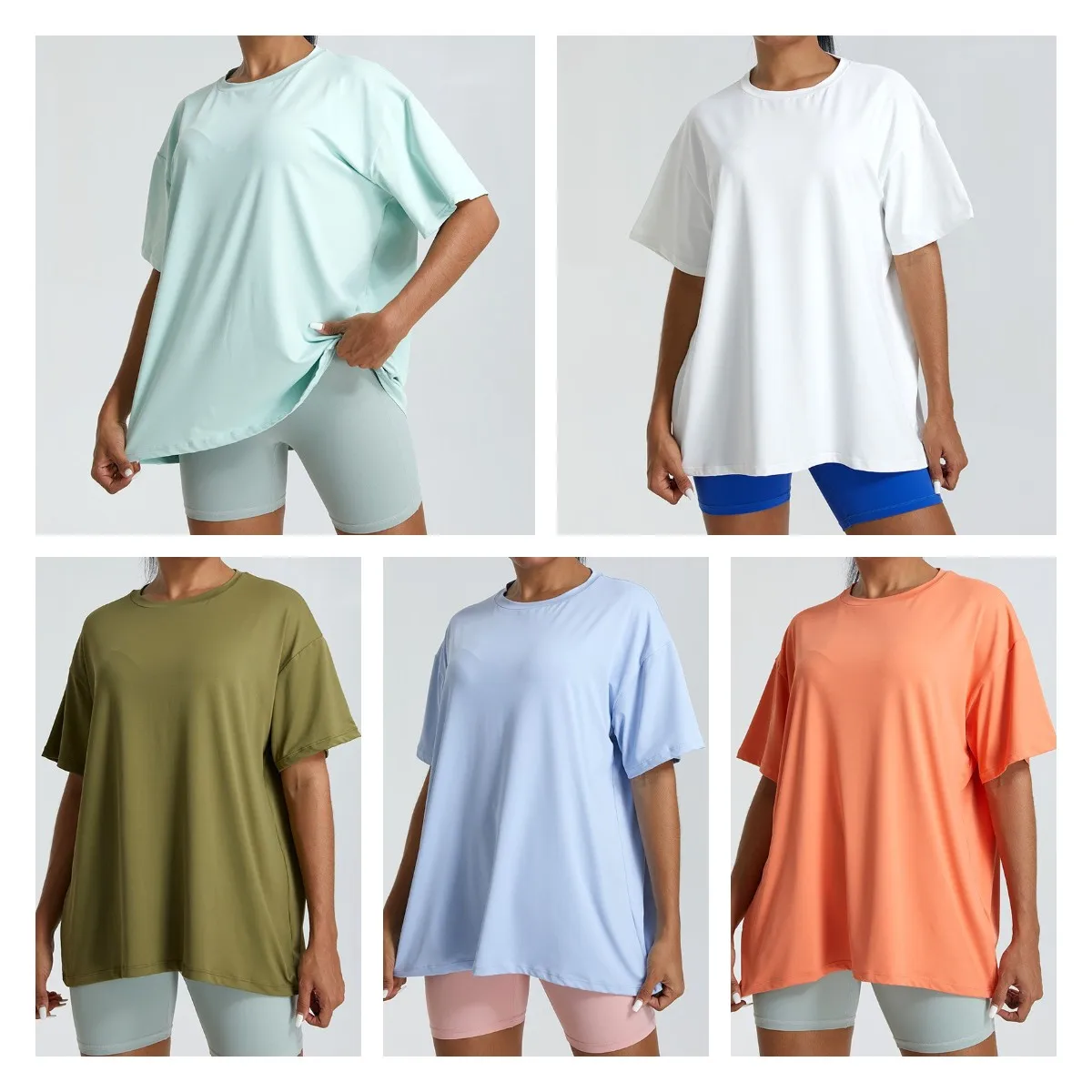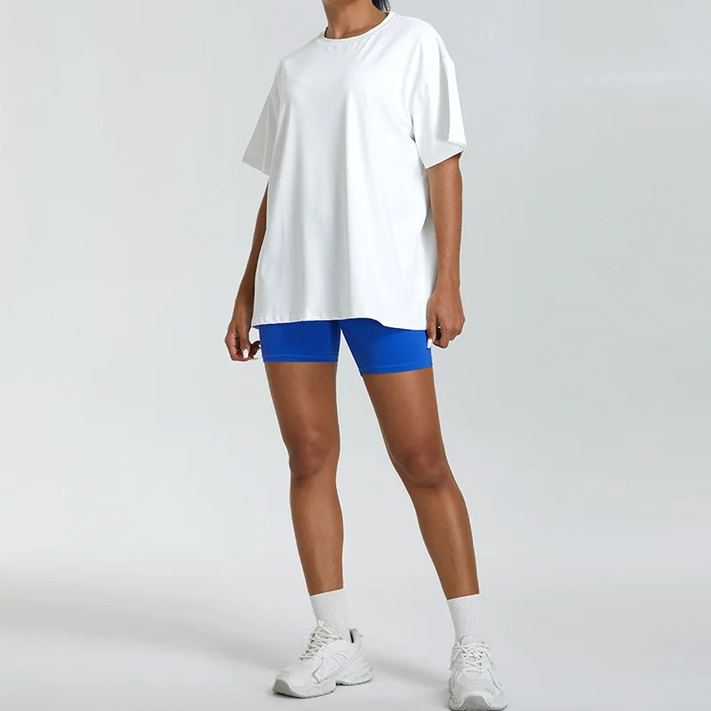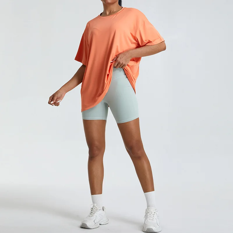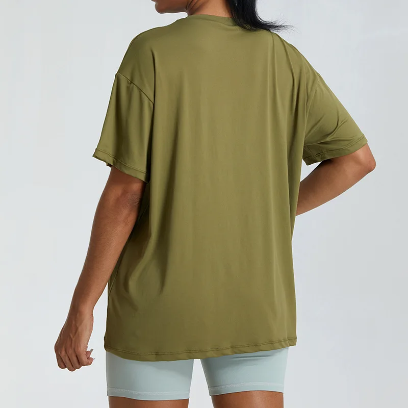 YISHENHON Loose Top Breathable Fitness Wear Women's Breathable Yoga Wear Cover-up Outer Wear Running Polyester Sports T-shirt