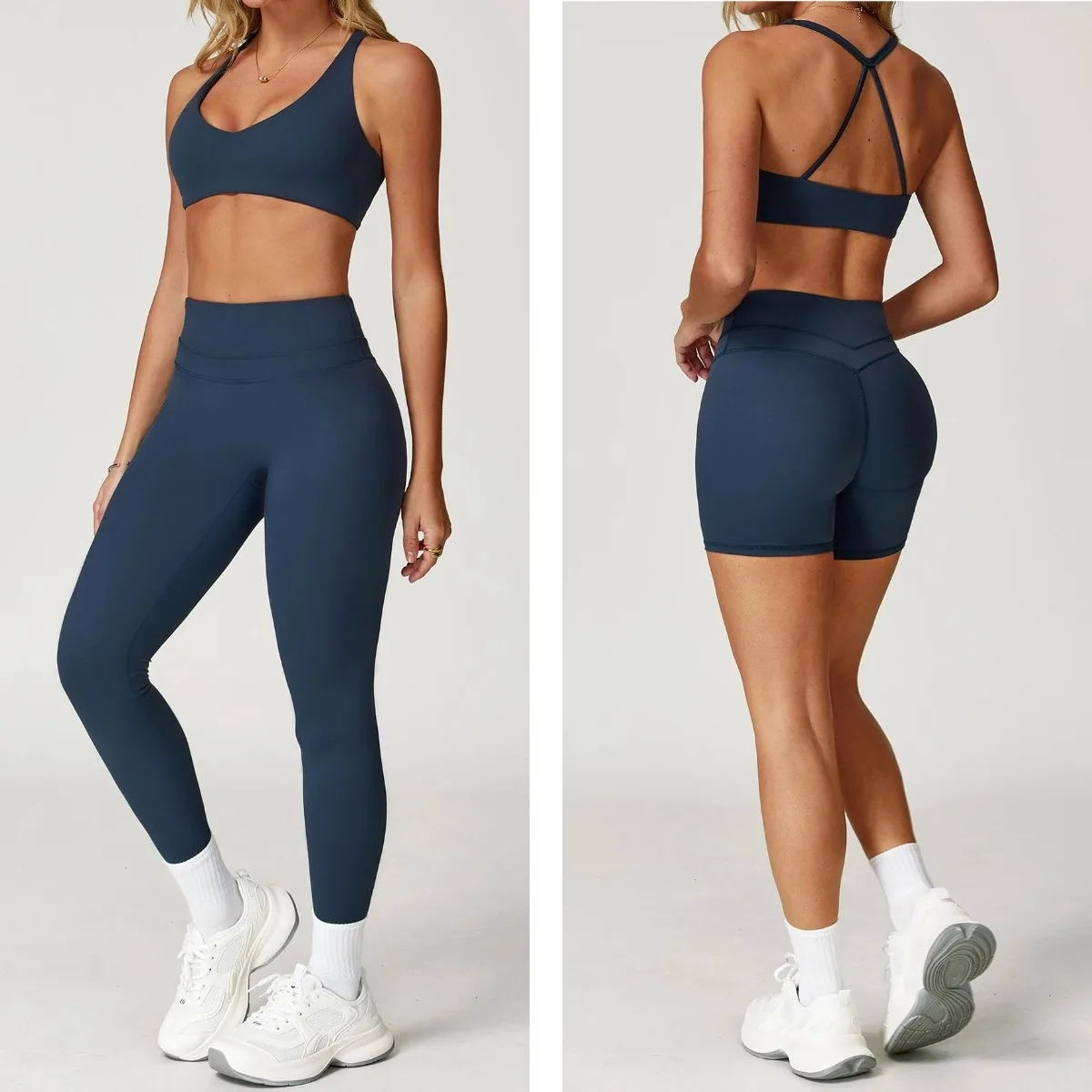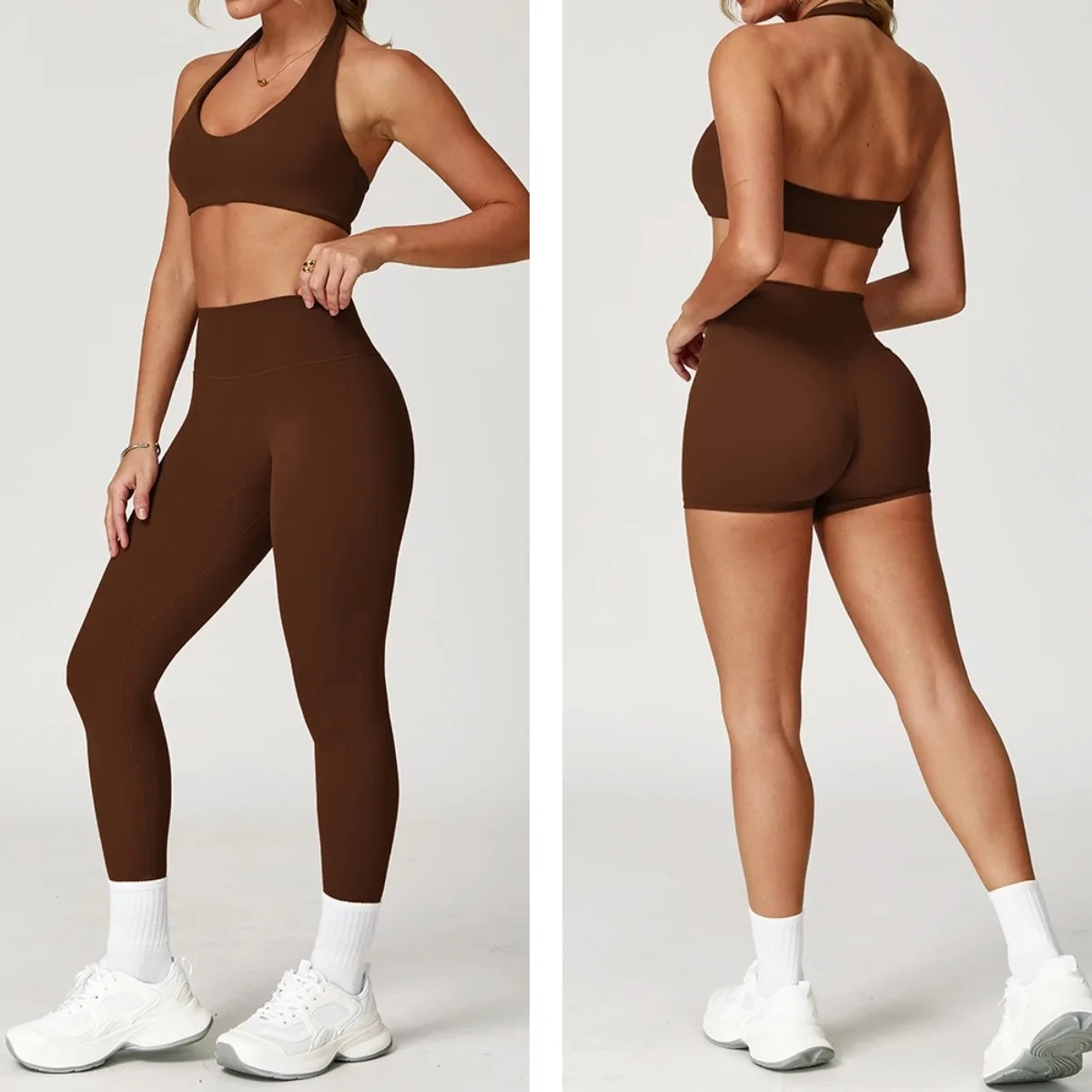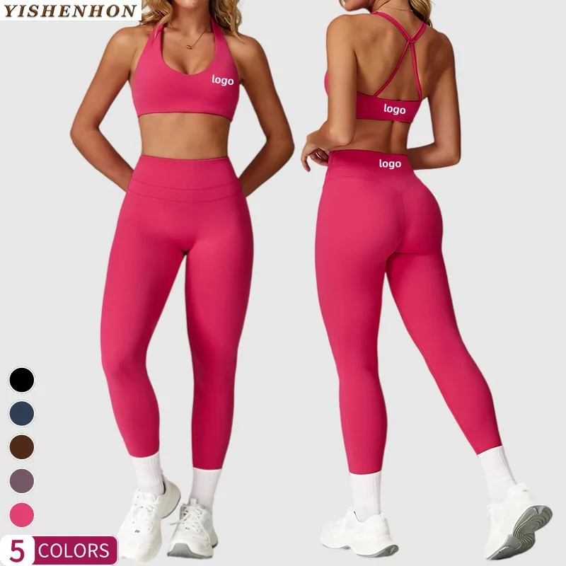 YISHENHON High Support Shockproof Halter Bra Gym Suits Girls High Waist Leggings Sets Women Quick Dry Athletic Wear Women Sets