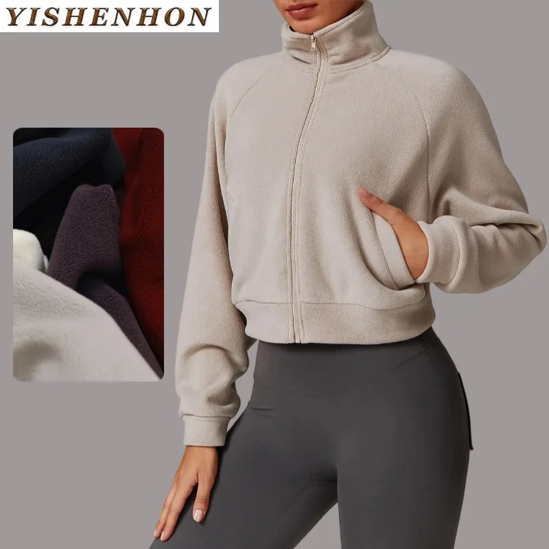 YISHENHON 2026 Women's Winter Coat High Quality Windproof Yoga Jacket Standing Collar Outdoor Sport Fitness Warm Brushed Jacket