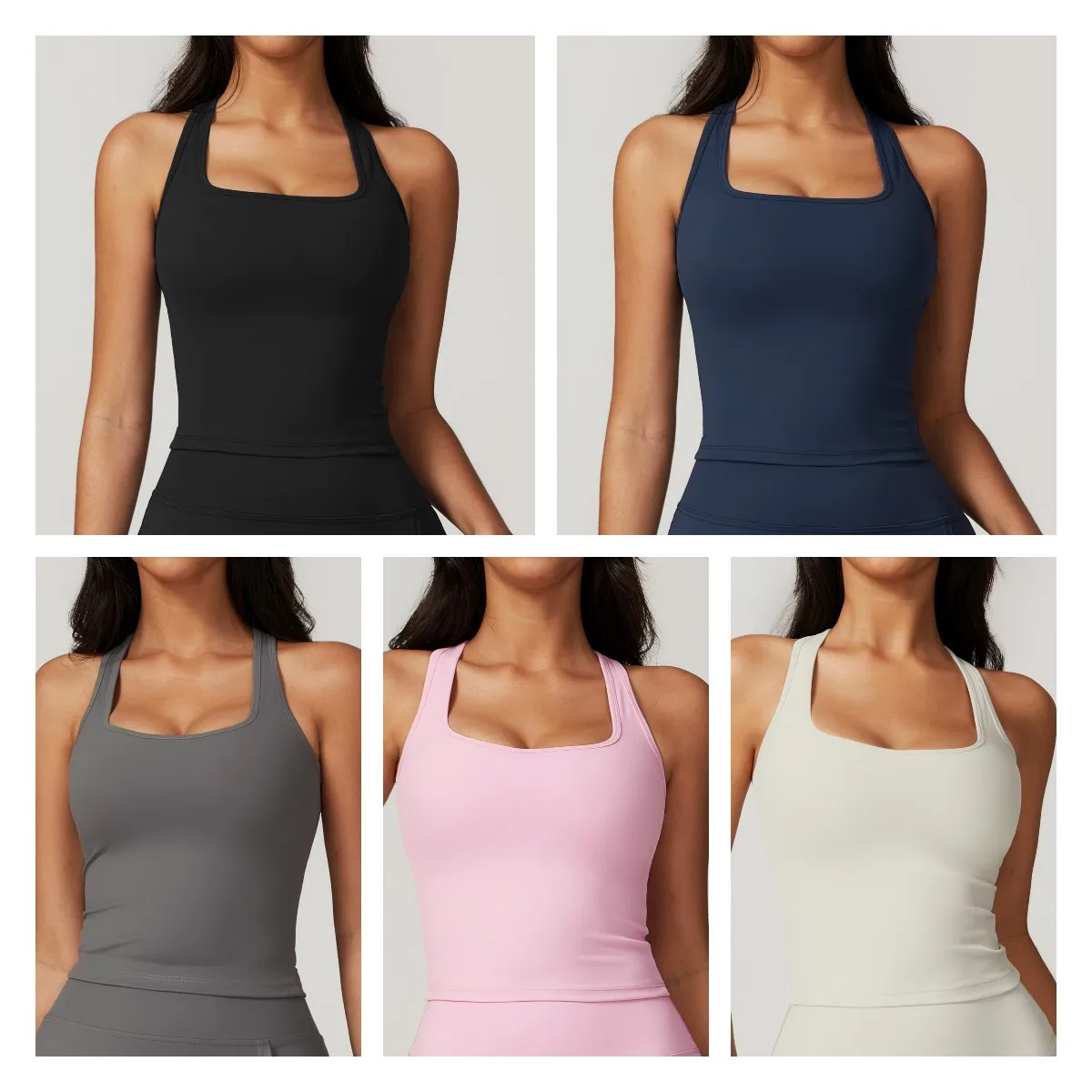 YISHENHON Womens square Neck Summer High Impact Support Tight Quick Dry Casual Running Fitness Custom Logo Solid Color Yoga Wear