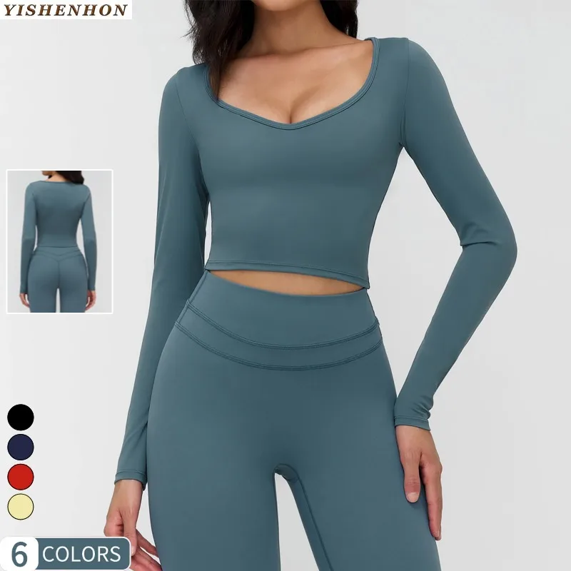 YISHENHON New Style Women's Quick-Drying Fitness Yoga Top Comfortable Skinny Outdoor Running Sports Swear