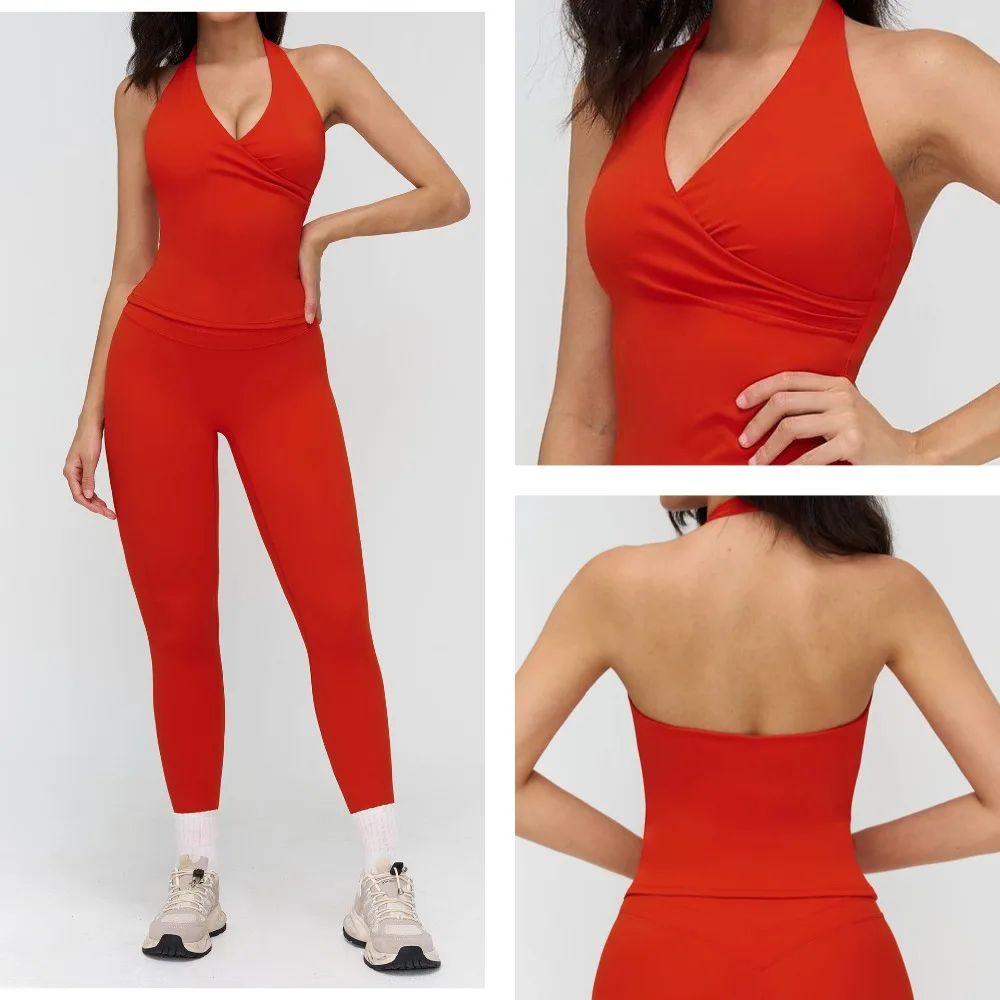 YSH Custom Plus Size Gym Women Yoga tank Top Workout Halter V-neck Tight Brushed Outdoor Running Fitness Sport Clothes