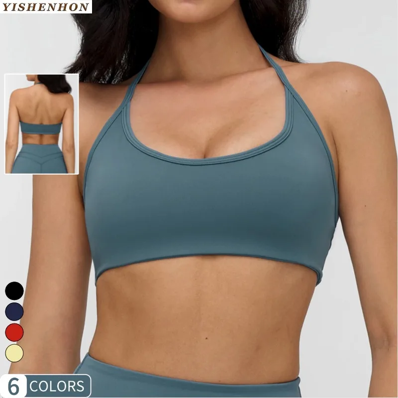 YSH Women's Custom Logo Fitness Yoga Bra Fashionable Breathable Underwear Sport Halter Backless High Support Running Bra