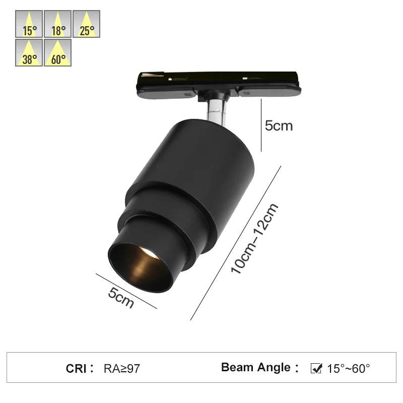 Modern Black Track Spot Lights for Living Room Ceiling Magnetic Adjustable 15-60° Beam Angle Cob Aluminum for Indoor Supermarket