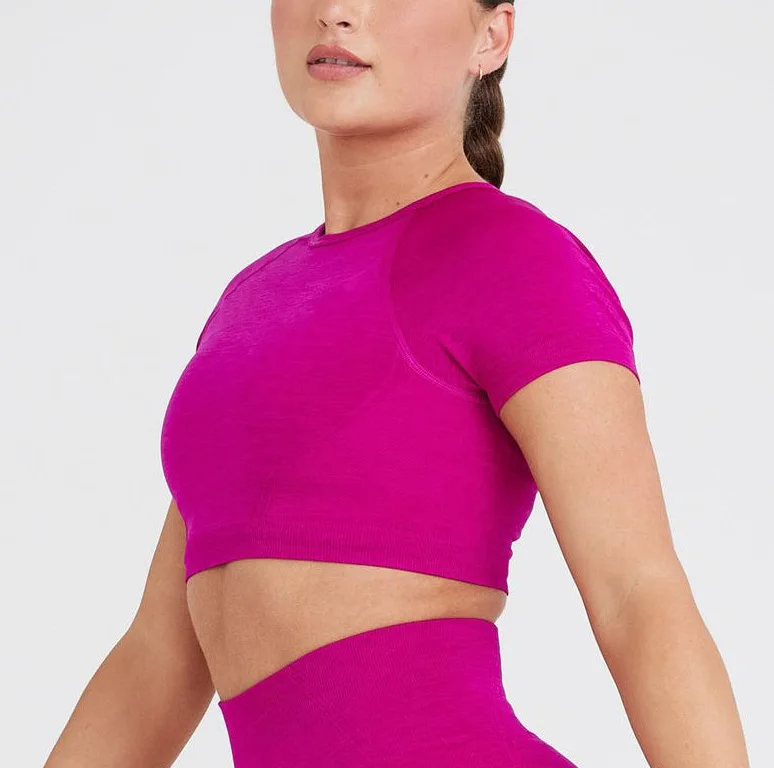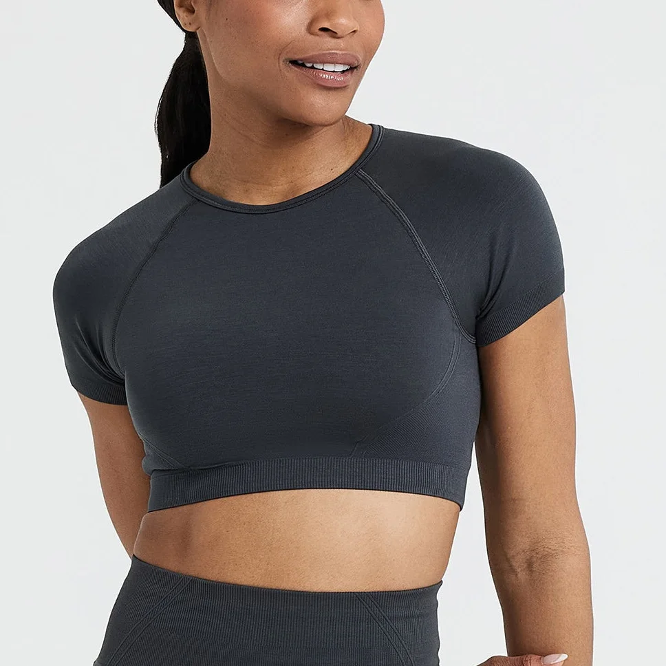 Private Label Women Activewear Workout Seamless Crop Tops Women Short Cropped Fit t Shirts Running T-shirts&tops