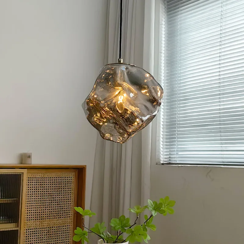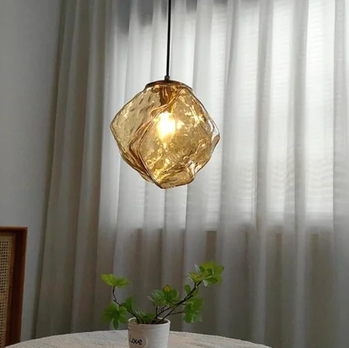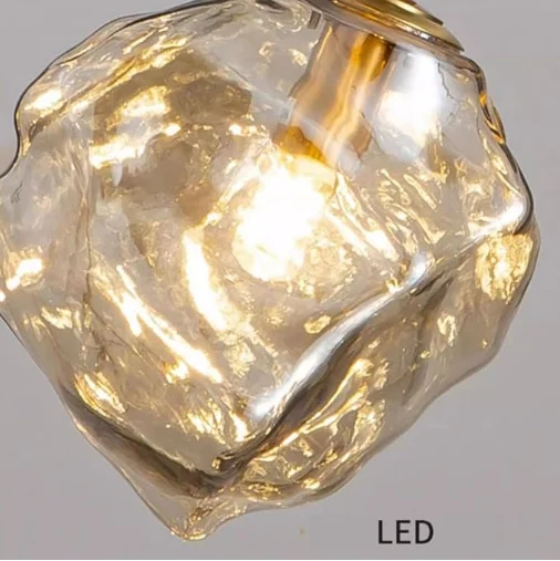 JACKSUN Mid Century Rose Gold Ice Cubes Glass Bedside Pendant Light Single Head Small Hanging Lamp for Coffee Shop Bar