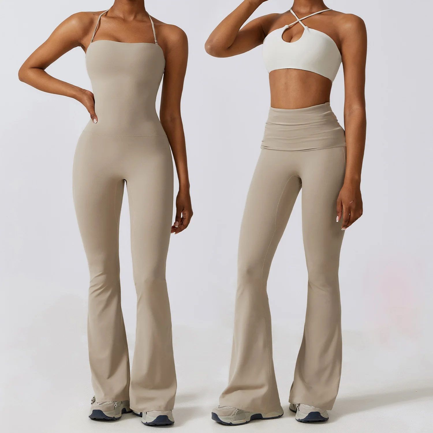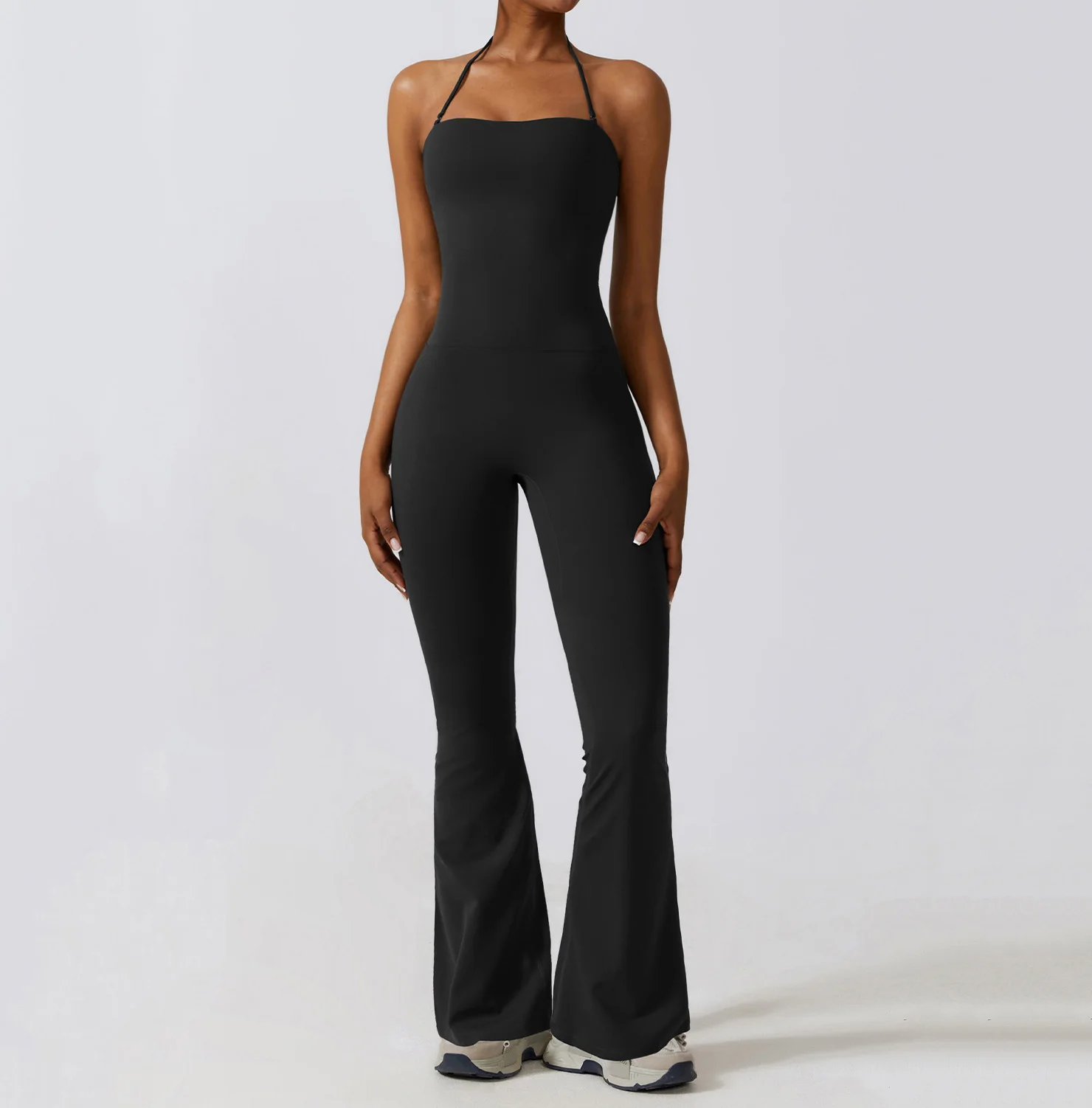New Arrival Custom Oem Wholesale Activewear Stretch Gym Sports Workout Jumpsuit Yoga Flare Pants for Women