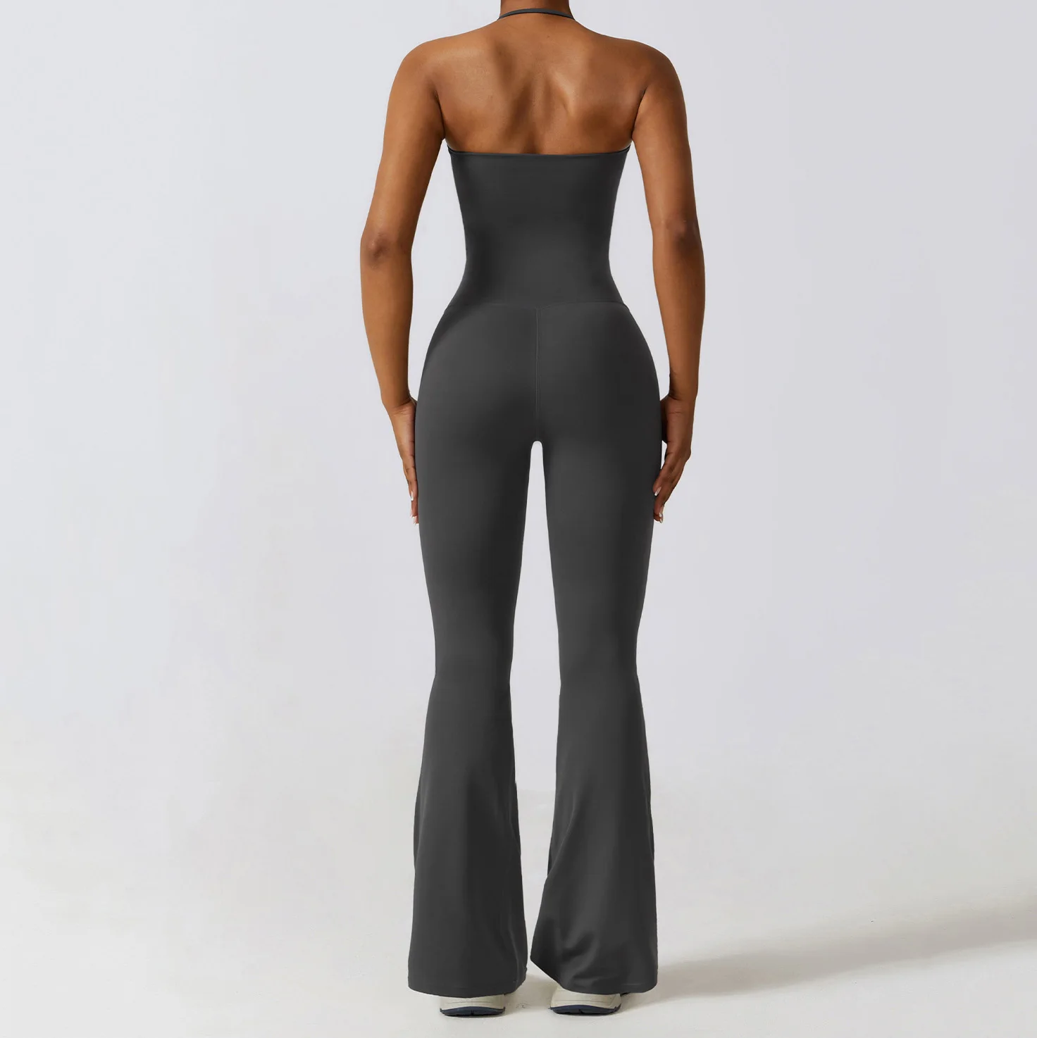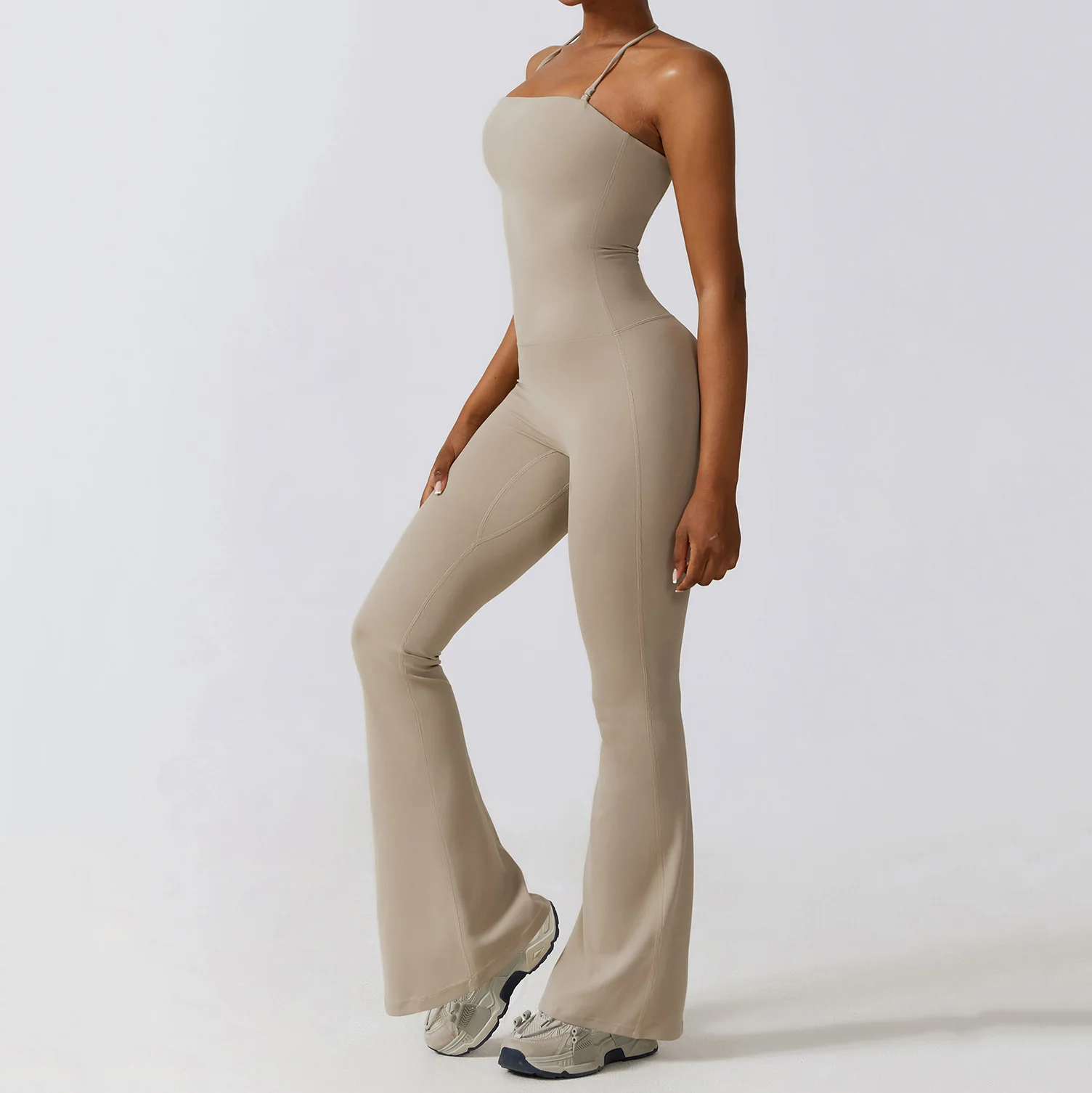 Wholesale Soft High Waistd Workout Halter Tops Sports Sets Jumpsuit for Women Yoga Flare Pants