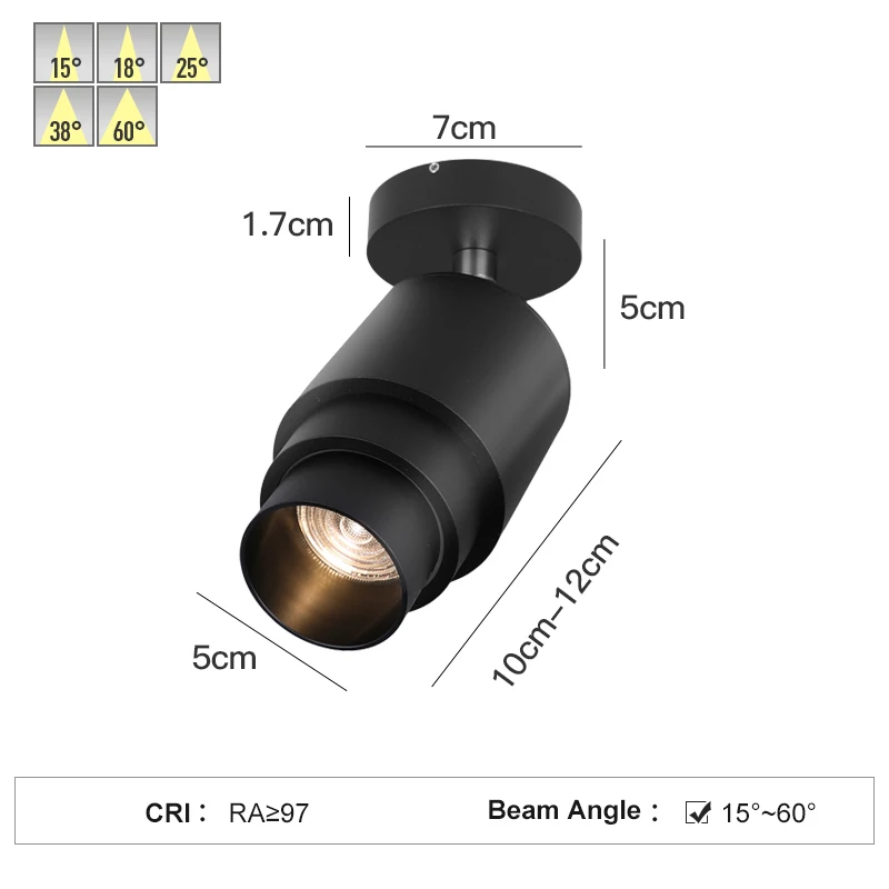 High Quality 7W LED Surface Spot Light Lamp Adjustable Beam Angle 15-60° Modern Design Aluminum Body for Art Gallery Lighting